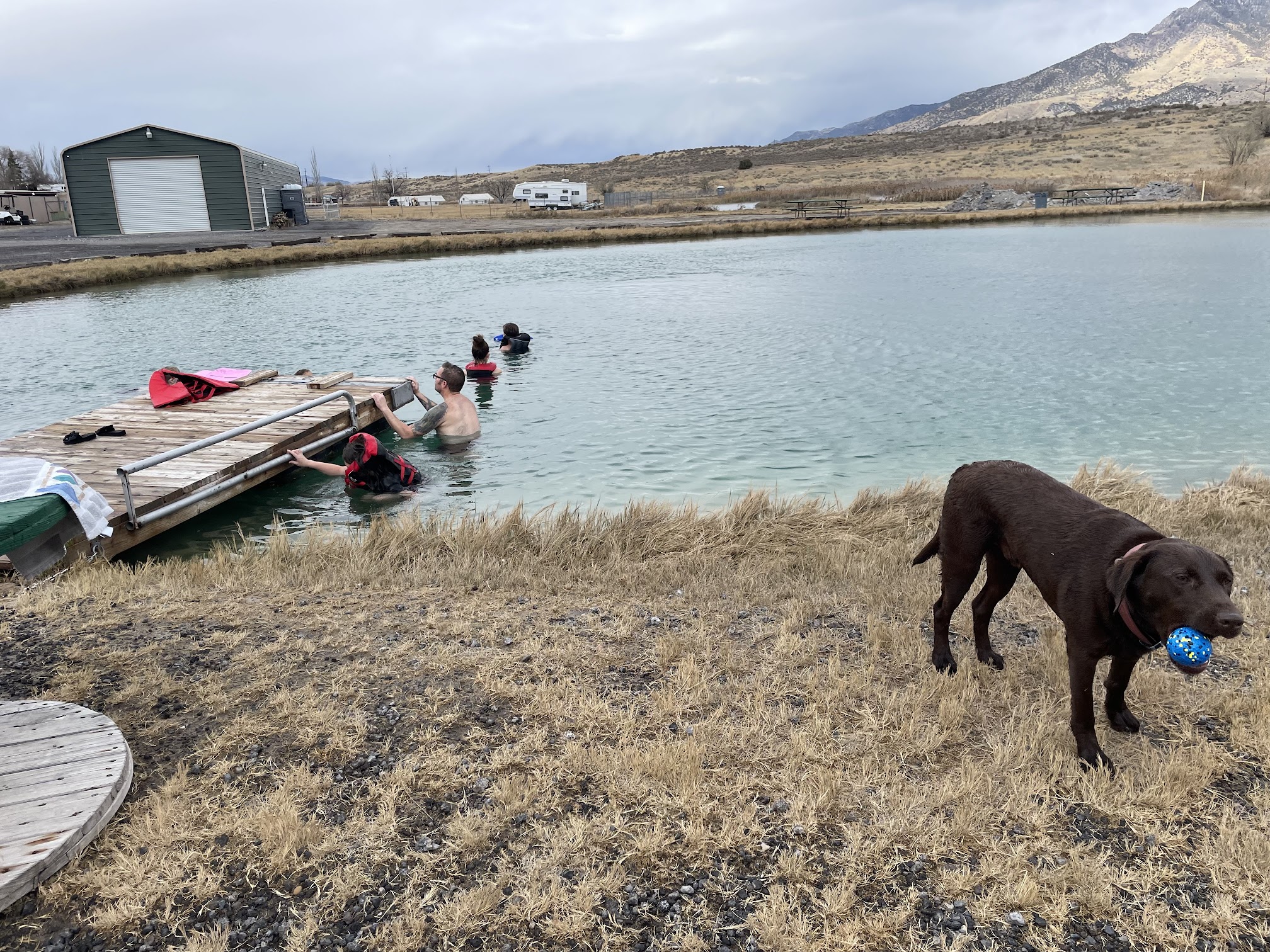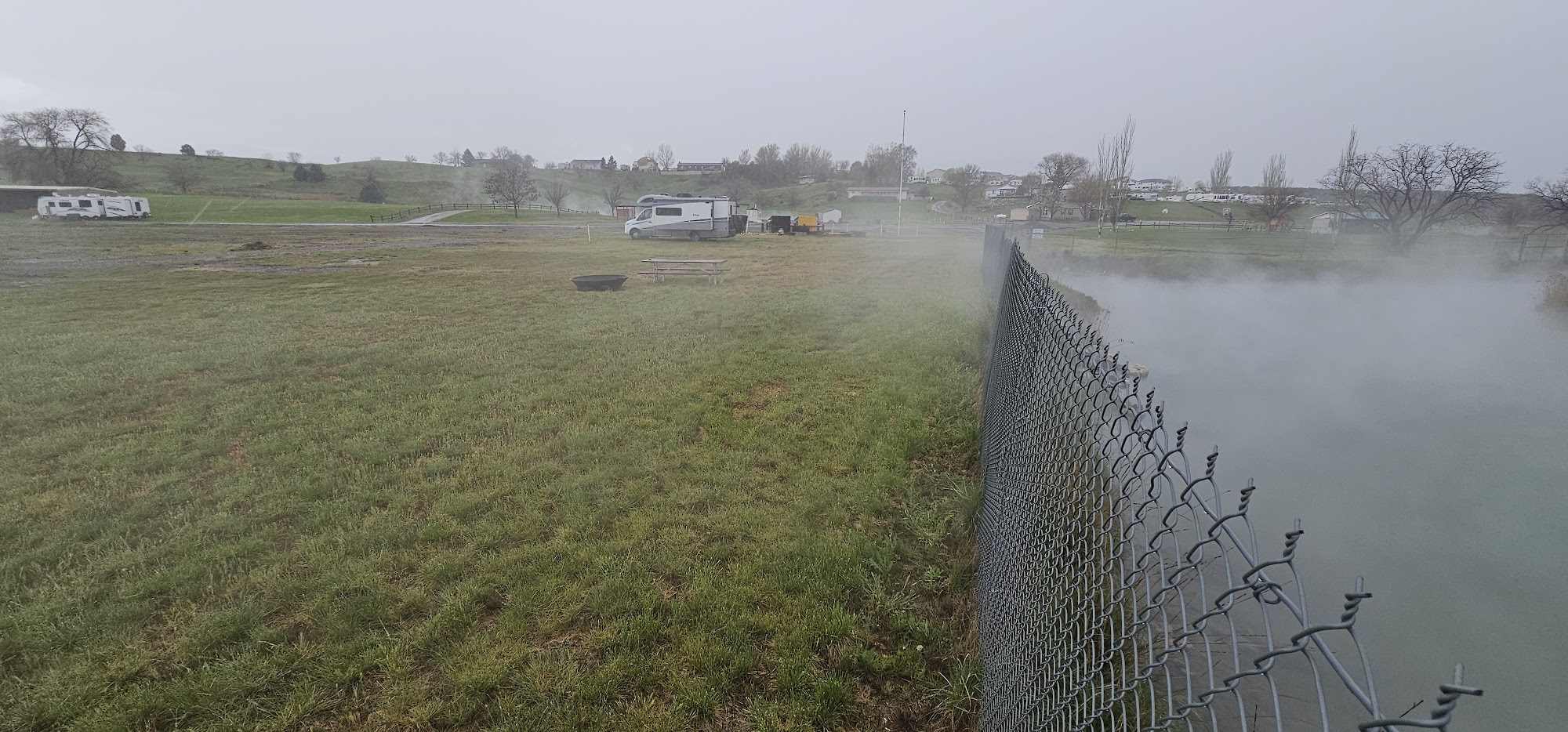Belmont Hot Springs and RV Resort is a fantastic getaway spot! The accommodations are awesome, with plenty of picnic tables, spacious fire pits at the campsites, and well-maintained, warm springs (felt like 85-90°F) that were a delight even in chilly weather. The hosts were incredibly kind and responsive, always available to answer questions. The springs were awesome! We started at one and then ended up at the second, smaller (but warmer) spring. Unique touches like nibbling minnows and adorable spiral-shelled snails aplenty for the kids to try and catch. It was also neat to watch scuba divers while our chocolate lab had a blast swimming (though leash rules apply outside the springs). The picnic and playground areas were perfect for a family meal. Picnic tables are available about 20’ from the springs so you can pack a picnic and not go far. We opted not to camp overnight due to cold temperatures and windy conditions. While the sites are ideal for RVs, I’d recommend tent camping in warmer months. The park is clean, well-kept, and welcoming for groups, SO much fun for my party of 4 adults, 5 kids, and a dog. Bonus: the glamping tents are charming, and should be available after the electric hookups are added next next spring. Highly recommend this spot!