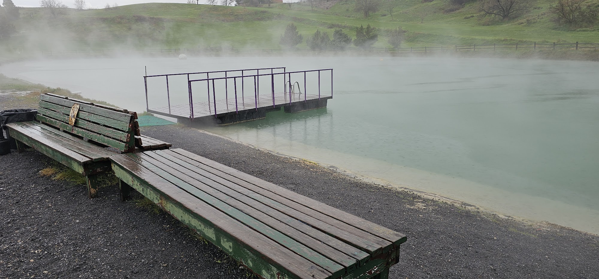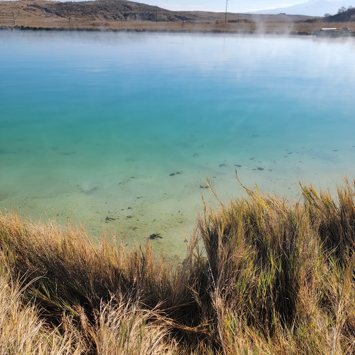 What a wonderful place to swim. The host was super nice. We arrived later in the afternoon so we only payed 15$ per person. While I wouldn’t say this was a HOT spring it is quite warm. The time I was there it was similar to a very warm bath. I think that temperature is better since it still allows you to swim around without over heating. I loved the fact they had those little fish that eat your dead skin. It tickles as they nibble on your feet and back. They’re a bit shy so you have to stay still if you want them to work on you. The spring’s edge had a porcelain slip feel. Very soft and lovely while you walk in the springs shallow area. We had a wonder time on Memorial Day. Just the 2 of us and a couple of ducks. We enjoyed the view of the mountains as we soaked in this gem of a hot spring.