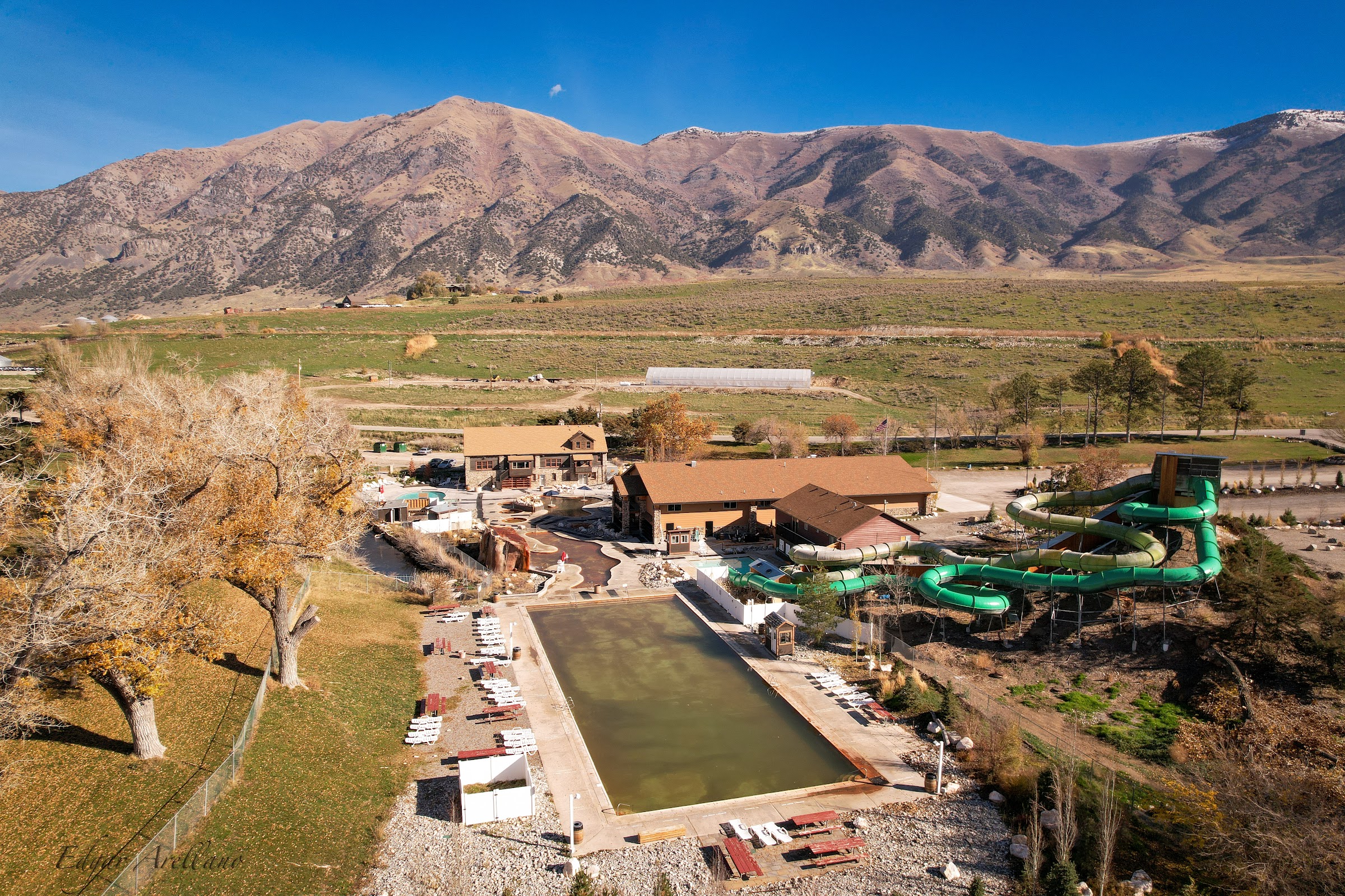 Crystal Hot Springs, located at 8215 UT-38, Honeyville, UT 84314, USA, is a natural hot springs resort renowned for having the largest flow of natural hot and cold spring water in the world. It offers a variety of mineral-rich pools and slides, making it a popular destination for recreation and relaxation for families and individuals.