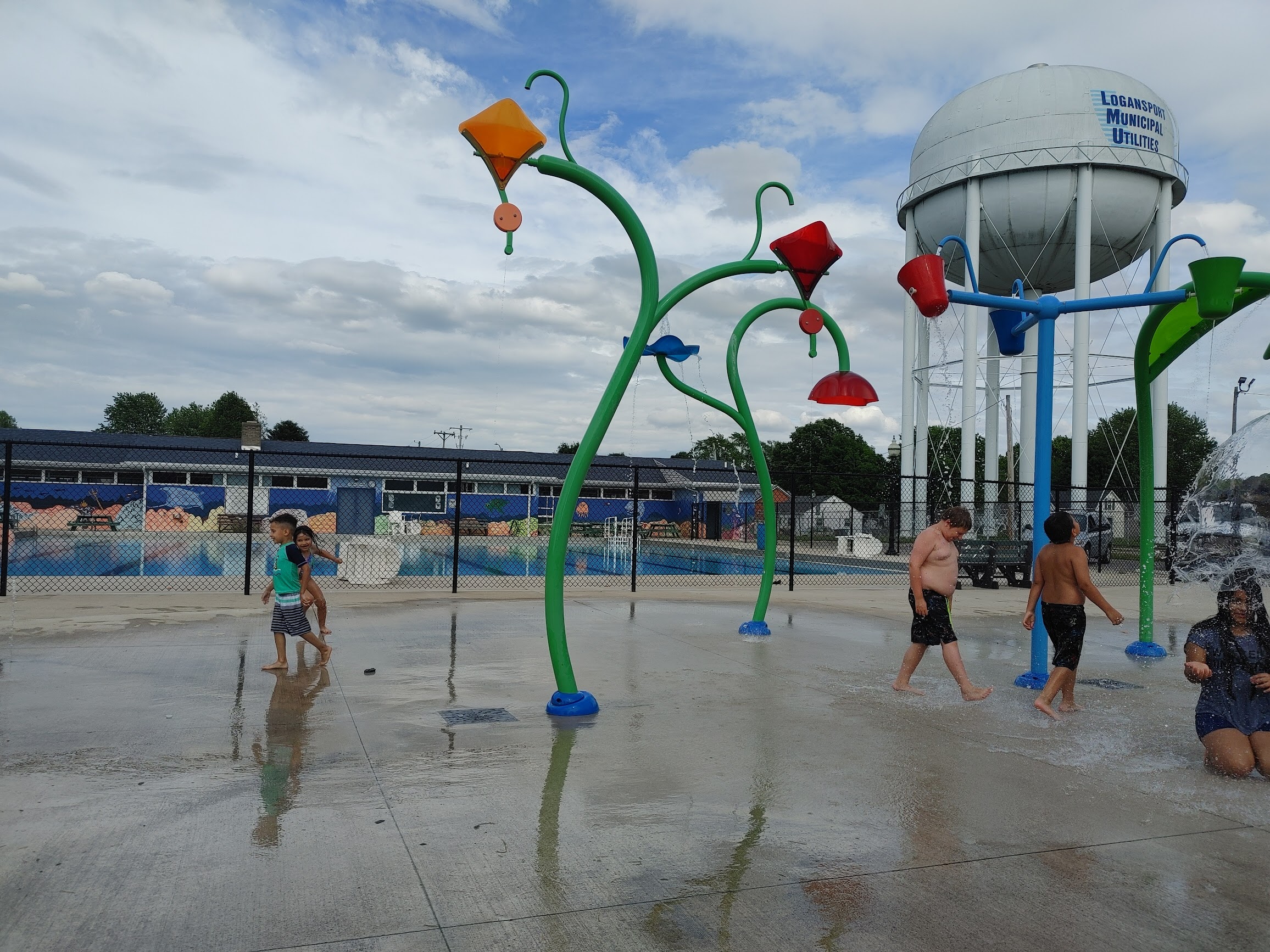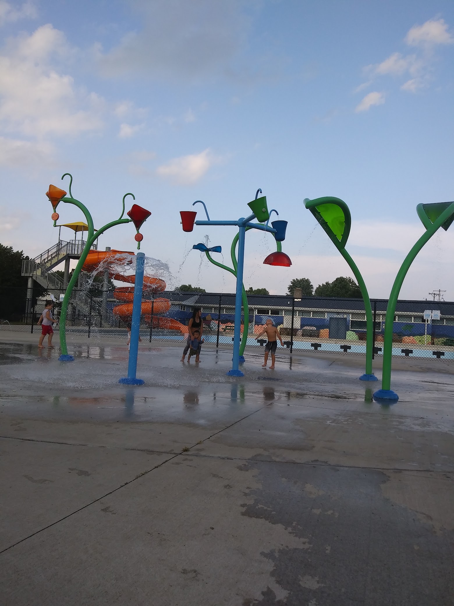 Kid-friendly place offering a water slide, a pool and a splash pad.