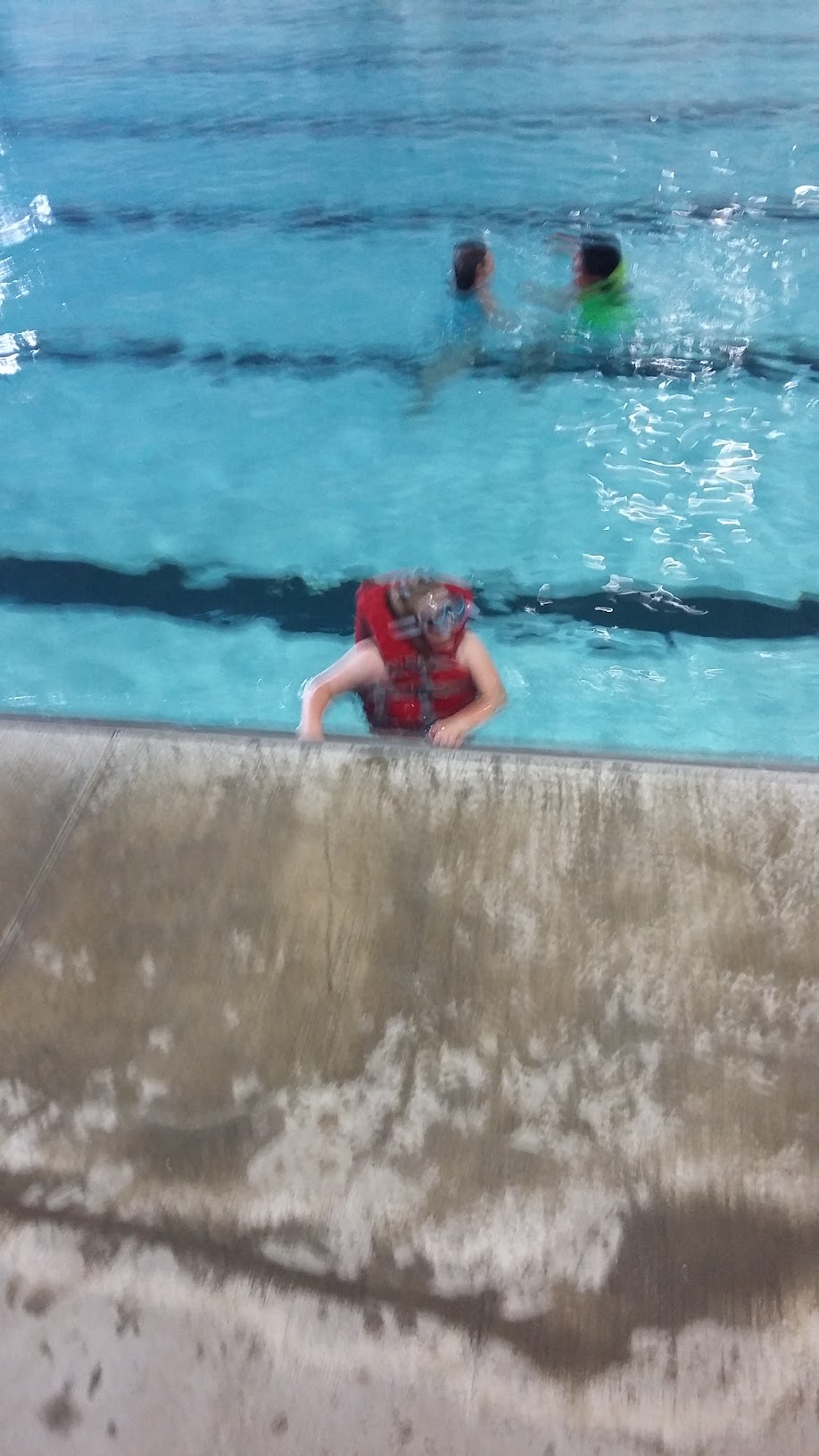 The pool and locker room were both clean. There was always a lifeguard watching. The water was not cold. It was a nice temp. The pool provides a large variety of life jackets in various sizes, along with goggles and pool toys.