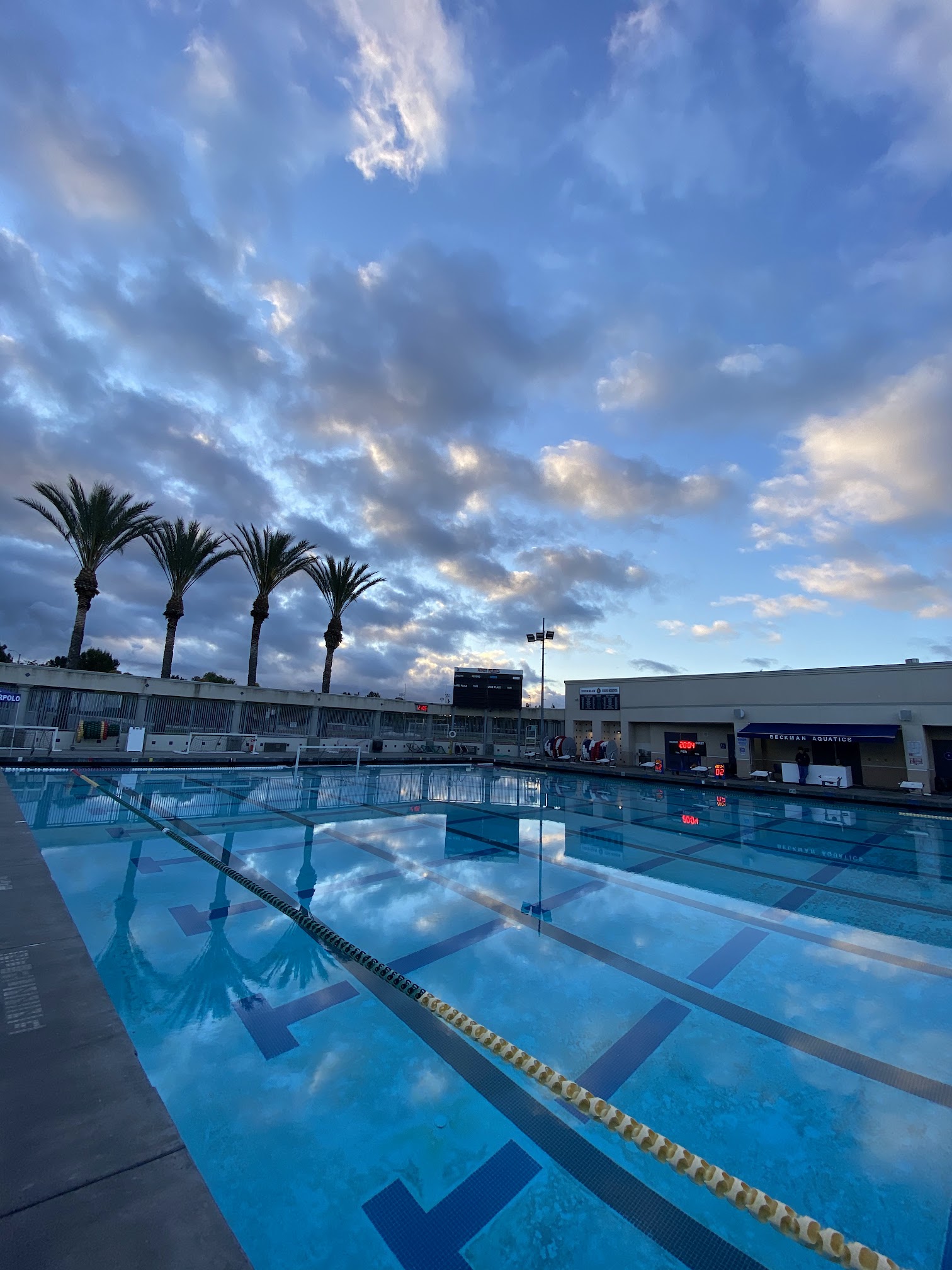 What are people saying (AI review summary)? The facility is consistently praised as a super nice, beautiful, and very well-maintained large pool, notably the second largest in The OC and 12 years old. It offers bleacher seating, often shaded and perfectly positioned for viewing, though both bleacher and pool deck space can be slightly limited. A digital board is a nice modern touch. Ample parking is available, with many spots under shelter. The water quality is described as 'ok', and the facility is situated on a nice campus.