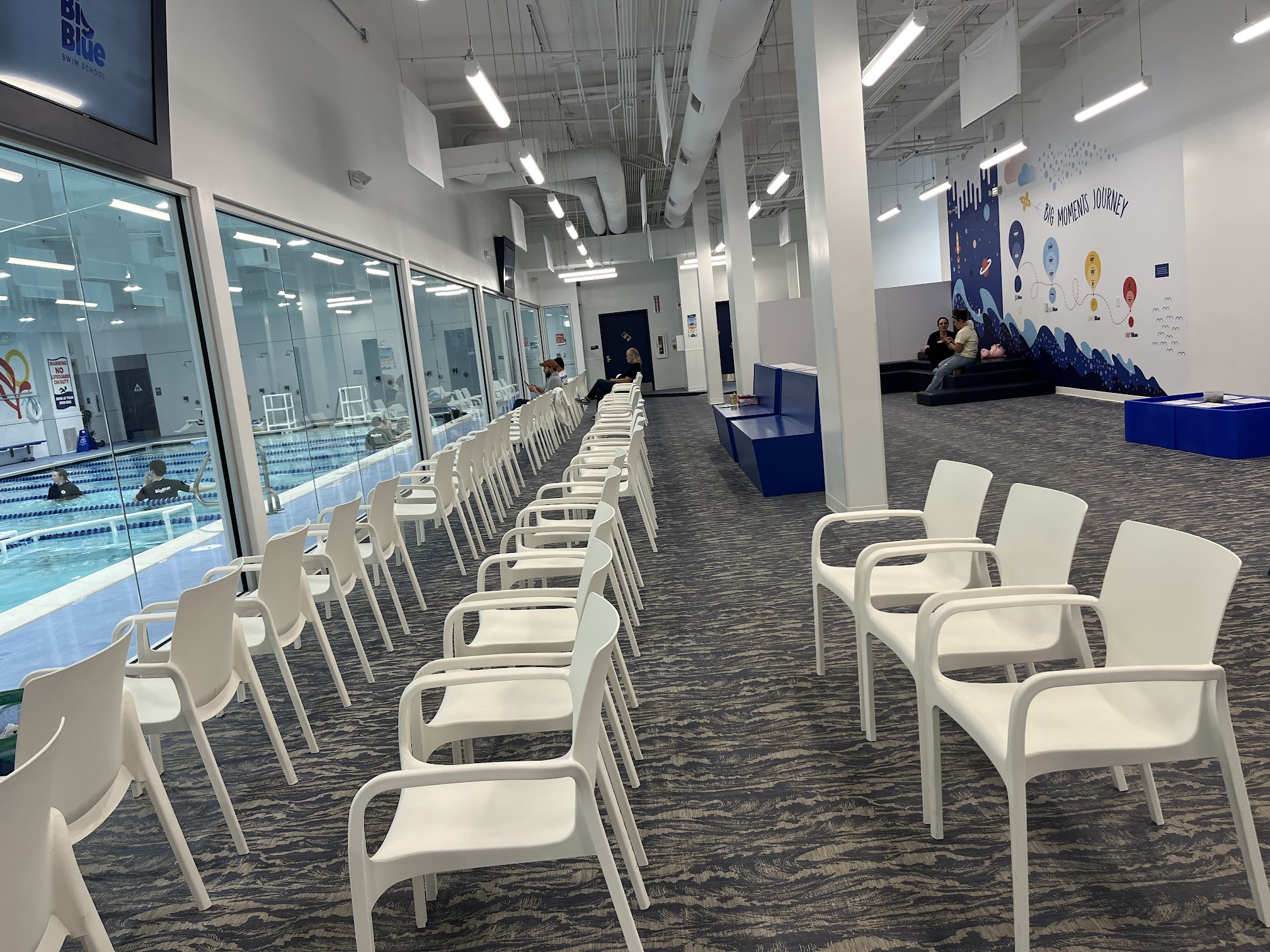 What are people saying (AI review summary)? Customers consistently praise Big Blue Swim School for its convenient scheduling via app and website, transparent pricing, and flexible class options. The staff, coaches, and instructors are frequently described as exceptionally friendly, helpful, attentive, professional, and genuinely caring, particularly with young children. Many reviewers highlight the coaches' patience and ability to make lessons fun and effective, leading to significant progress in children's swimming skills. Specific instructors are often singled out for their excellent teaching. The facilities are noted for being clean, with some locations offering a small play area. While overall experiences are highly positive, one reviewer suggested that pricing could be more competitive.