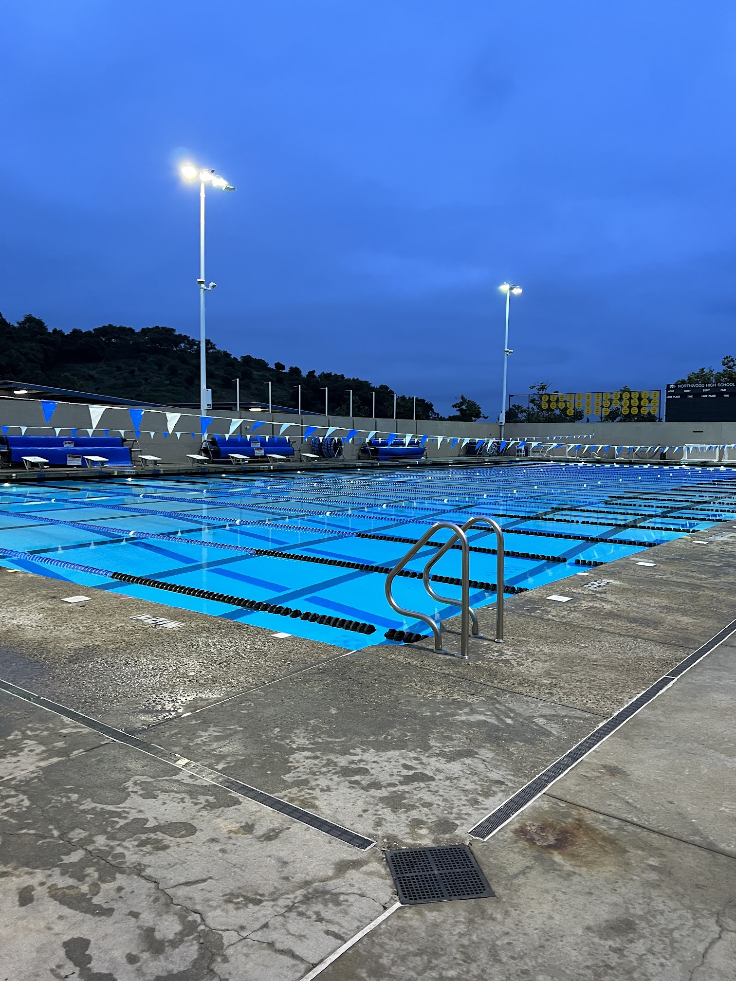 The Northwood High School Swimming Pool, located in Irvine, CA, is a key aquatic facility often comprising a large competition pool (e.g., 50m x 25y) and a smaller warm-up pool. It is primarily utilized by the high school's athletic teams (swimming, water polo) and various local youth aquatic clubs for practices, competitions, and programs.