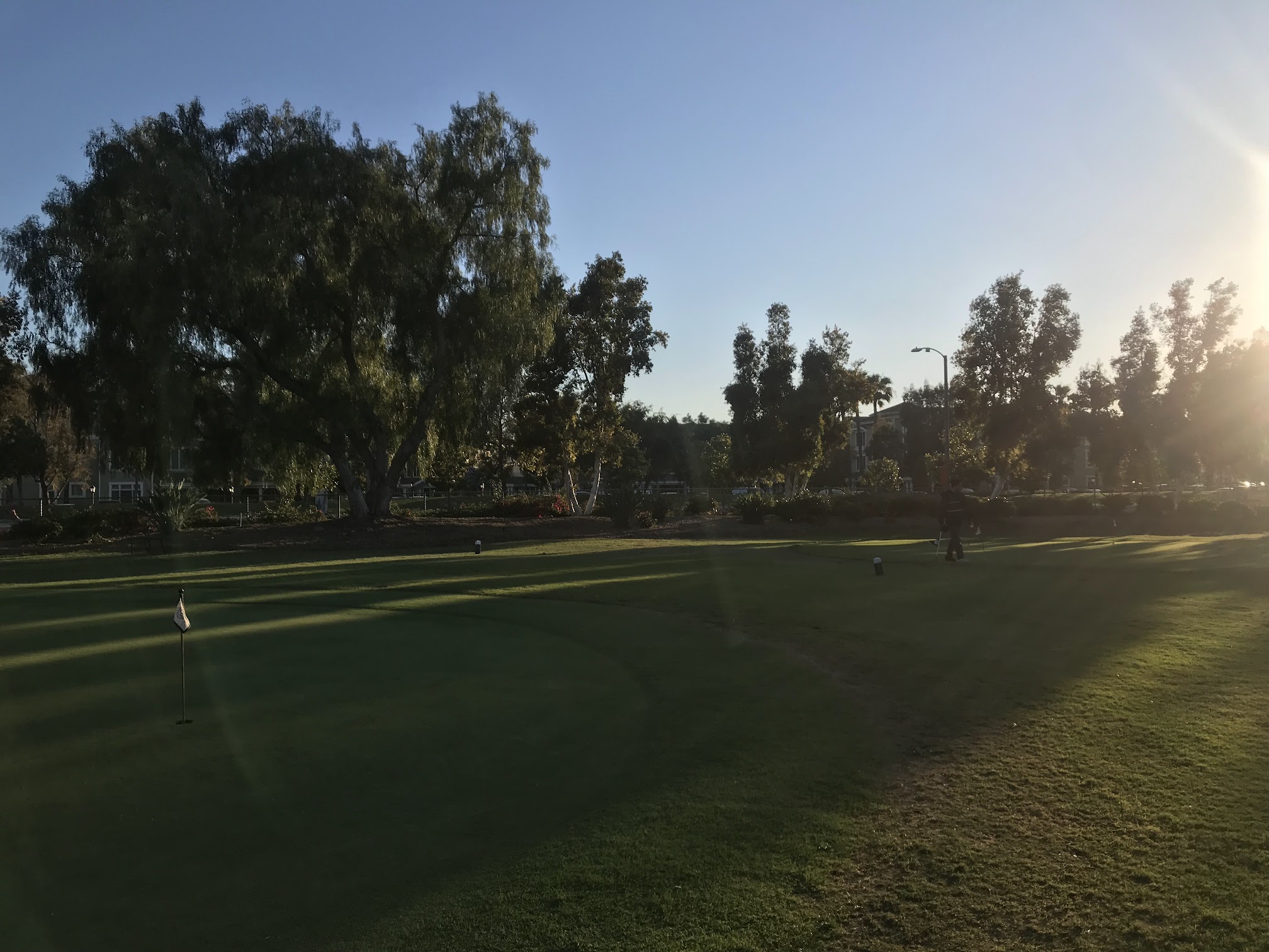 Driving range with a putting green and chipping area for golf practice.