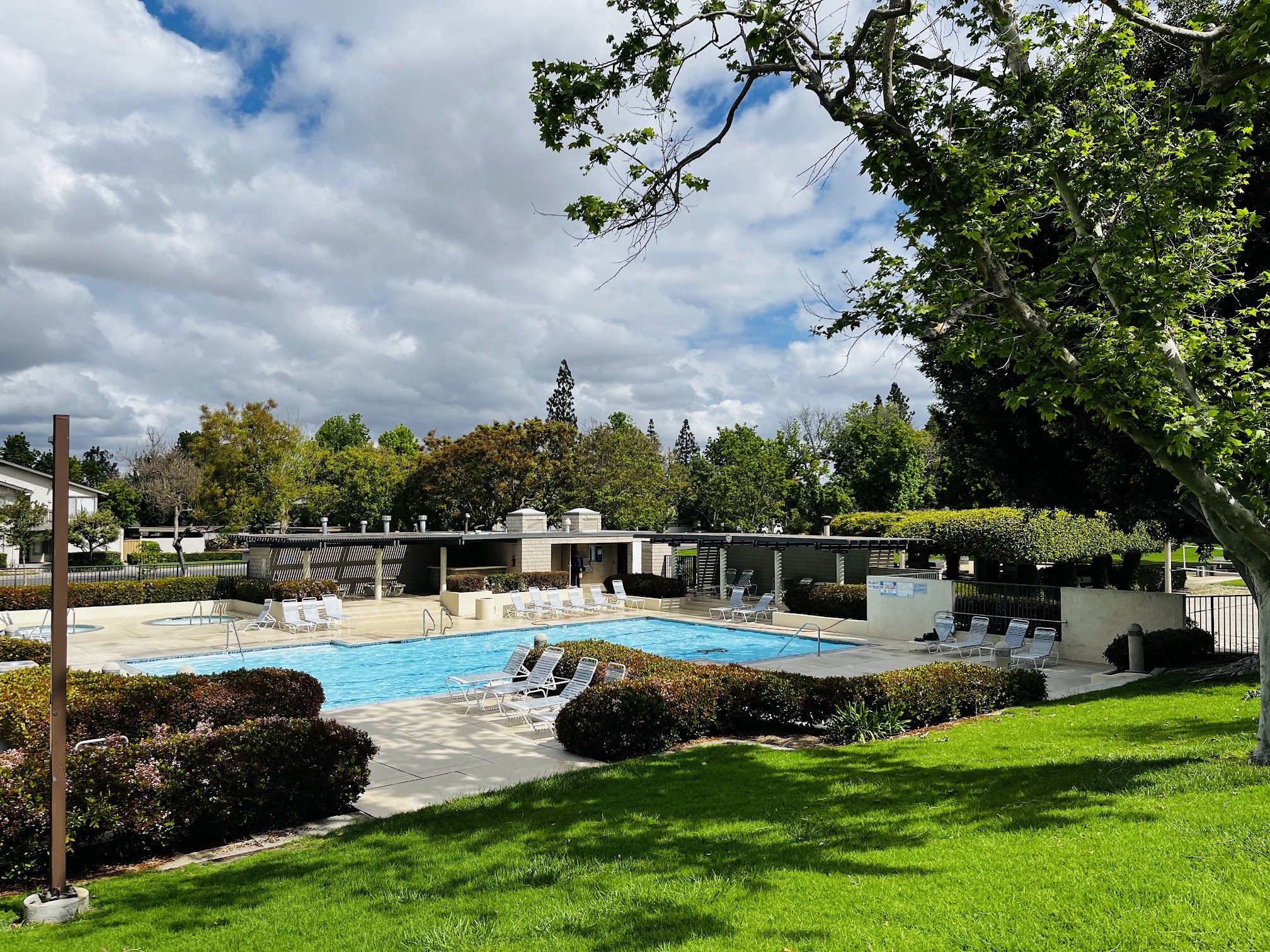 What are people saying (AI review summary)? This park and pool area receives mixed but generally positive reviews. The park features unique amenities such as bocce ball, horseshoes, concrete chess/checkers tables, and a volleyball court, though limited parking is noted, and users should be aware of coyotes at night. The pool is highly praised, often described as an 'adults only' or child-free environment, making it ideal for lap swimming and relaxation. It boasts a good-length lap pool (3-4 lanes), two heated jacuzzis (one often warmer), and clean, well-maintained facilities with manicured landscaping and good showers. Many reviewers find the spas superior to others in the area, with working jets and clean chairs. Access requires a Woodbridge card, and one review mentions it being open 24 hours. However, a recent review indicates a decline in spa maintenance, with missing jet tips and shower amenities.