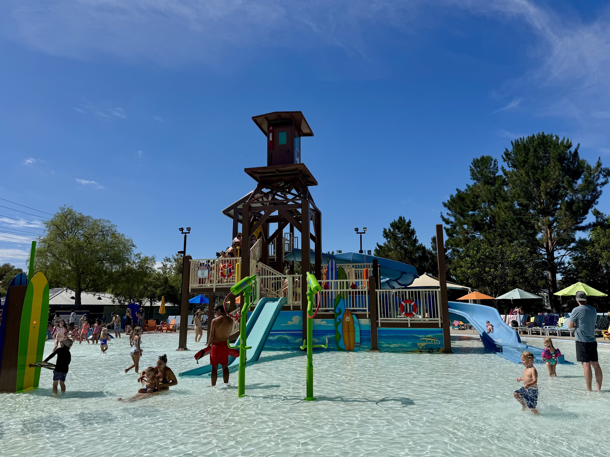 What are people saying (AI review summary)? This community water park is highly recommended, praised for its recent renovations, spaciousness, cleanliness, and safety, with attentive pool monitors. It's described as a fun and excellent spot for families, particularly children up to age 12, offering great open and covered areas ideal for parties or relaxed weekends with no crowds. Amenities include a stocked ice cream vending machine. Access requires a resident card or being a guest of a resident.