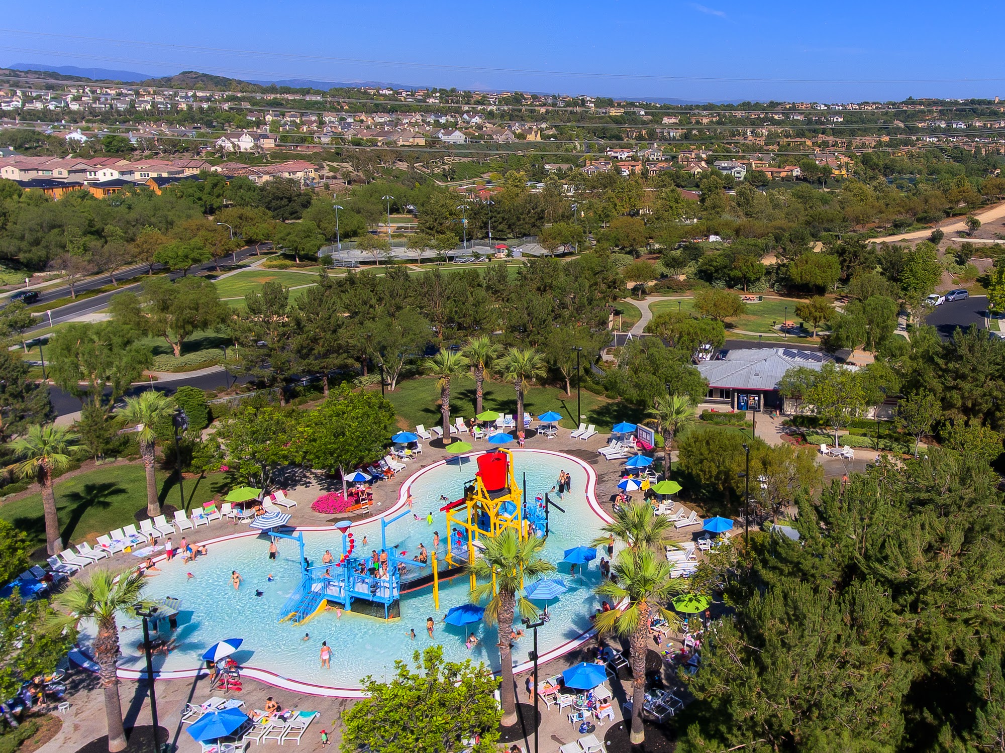 Terramor Aquatic Park is a private recreational facility exclusively for residents of the Terramor community in Mission Viejo, CA. Located at 26281 O'Neill Dr, it features a large main swimming pool, a children's splash pad or wading pool, and a spa, serving as a key amenity for community leisure and recreation.