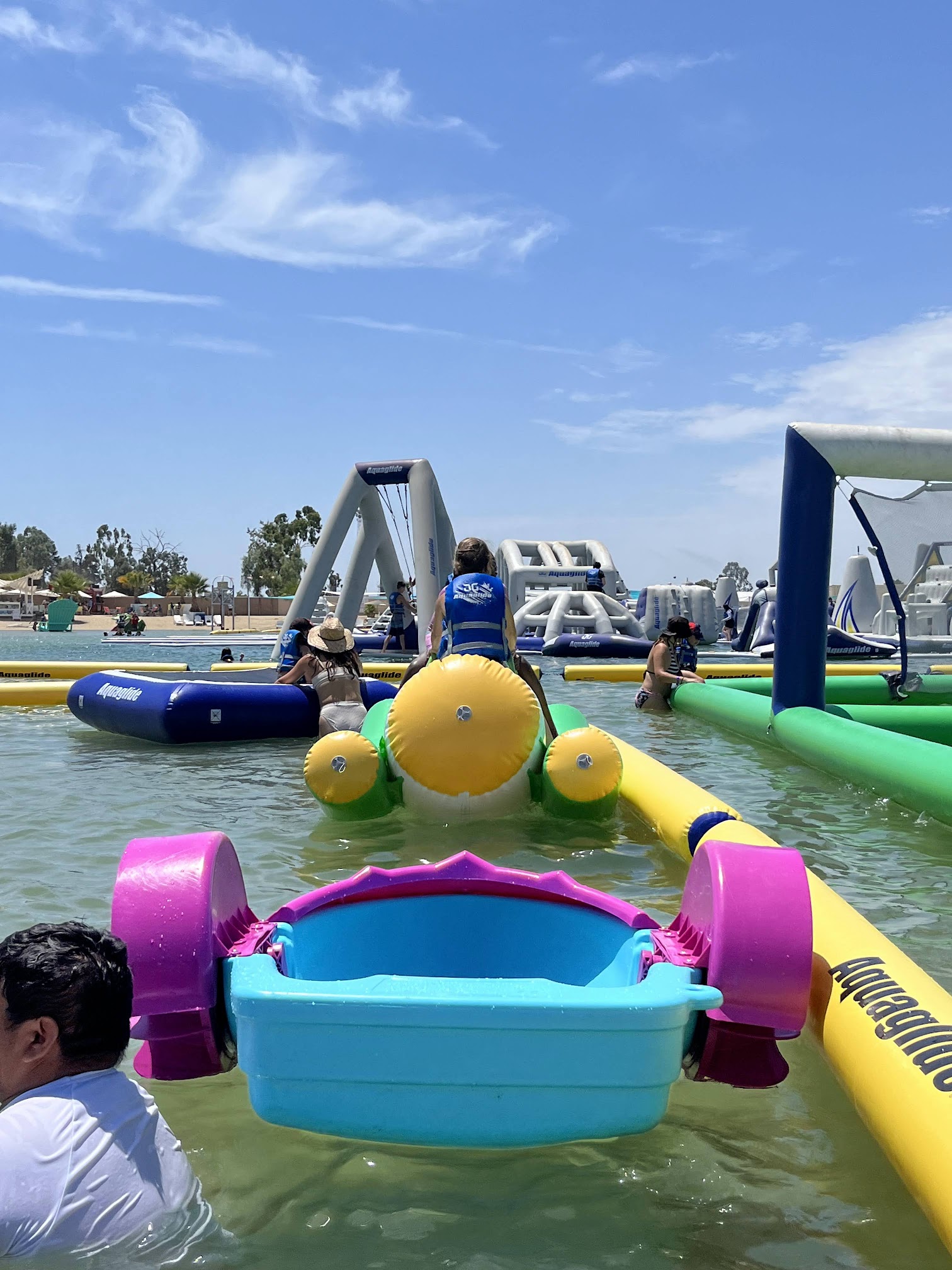 We had the most incredible day at Adventure Lagoon and it is easily one of the most fun water park. The floating obstacle course is the main event, and it's fantastic. There's a great variety of challenges, from inflatable slides to bouncing domes, that were fun and challenging for both the kids and the adults in our group. Beyond the main obstacle course, the other activities were a perfect way to relax and have more fun. We loved kayaking and paddleboarding on the beautiful, fresh water. It's a great change of pace after a high energy session on the inflatables. The water itself is incredibly clean and at a very comfortable temperature. A huge tip for anyone going, wear water shoes! We were struggling on the course and the shore without them. The staff was also top notch, friendly, attentive, and helpful throughout the day. This place truly is a hidden gem for wholesome family fun. We're already planning our next trip back!
