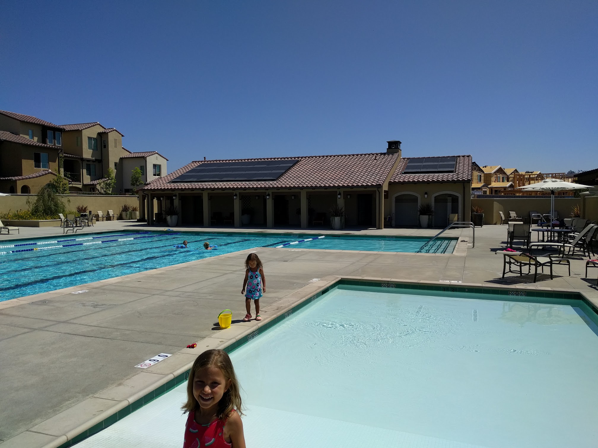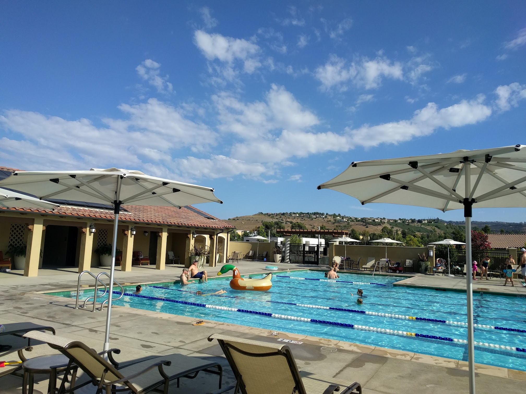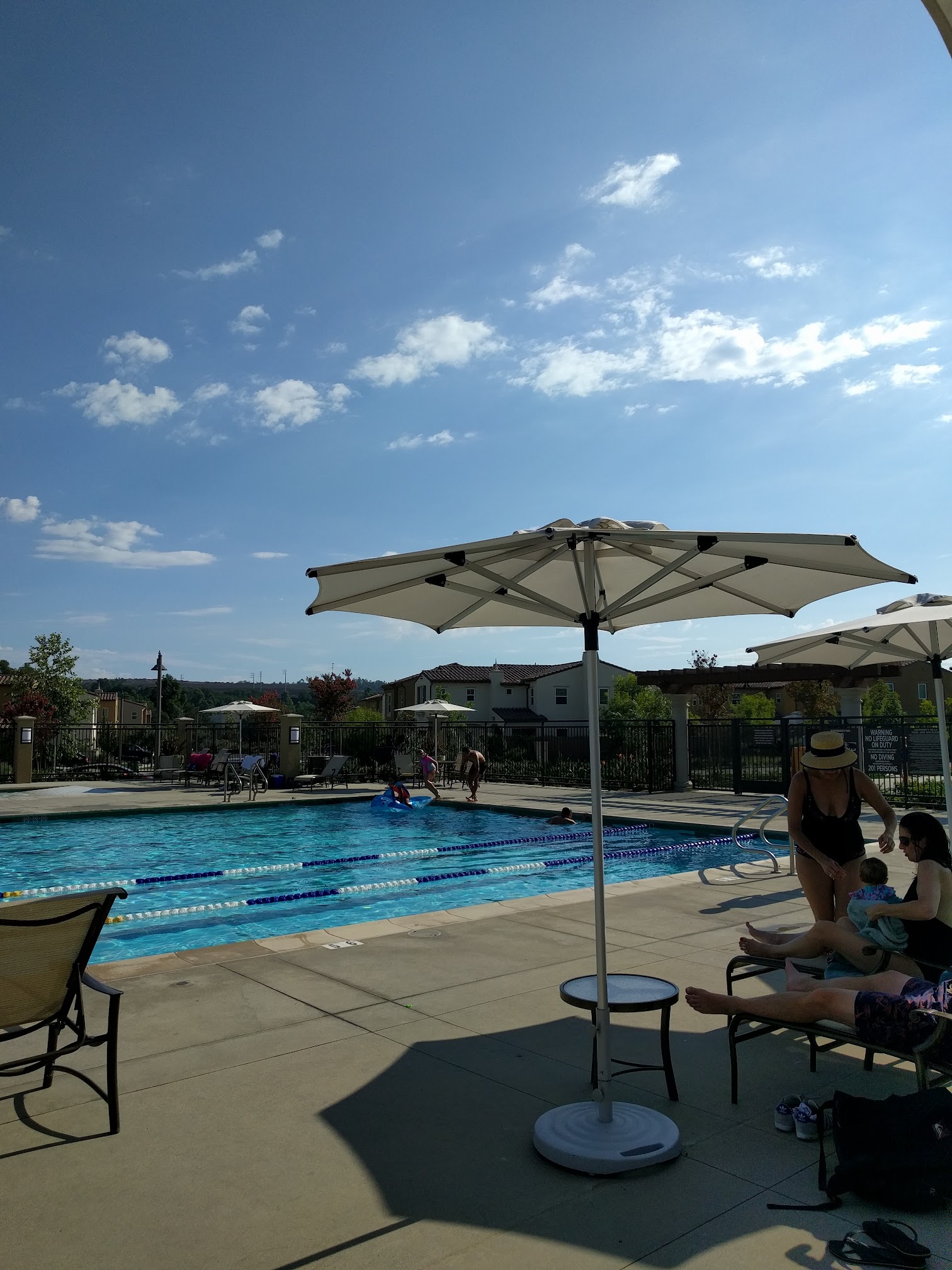 A nice large pool for UniHills residents. A small toddler pool (18" deep) is a safer option for babies and toddlers. The larger pool has a shallow section for the kiddos to safely play and a larger section for bigger kids and adults. There are usually 3 lanes open for lap swimming at all times. If the other sections of the pool are full, you may find families making use of ones end of the lane or the other. There is also an in ground jacuzzi that gets very hot. Has large restrooms with changing areas and outdoor showers. Overall, a great place for families and those looking for a little exercise.