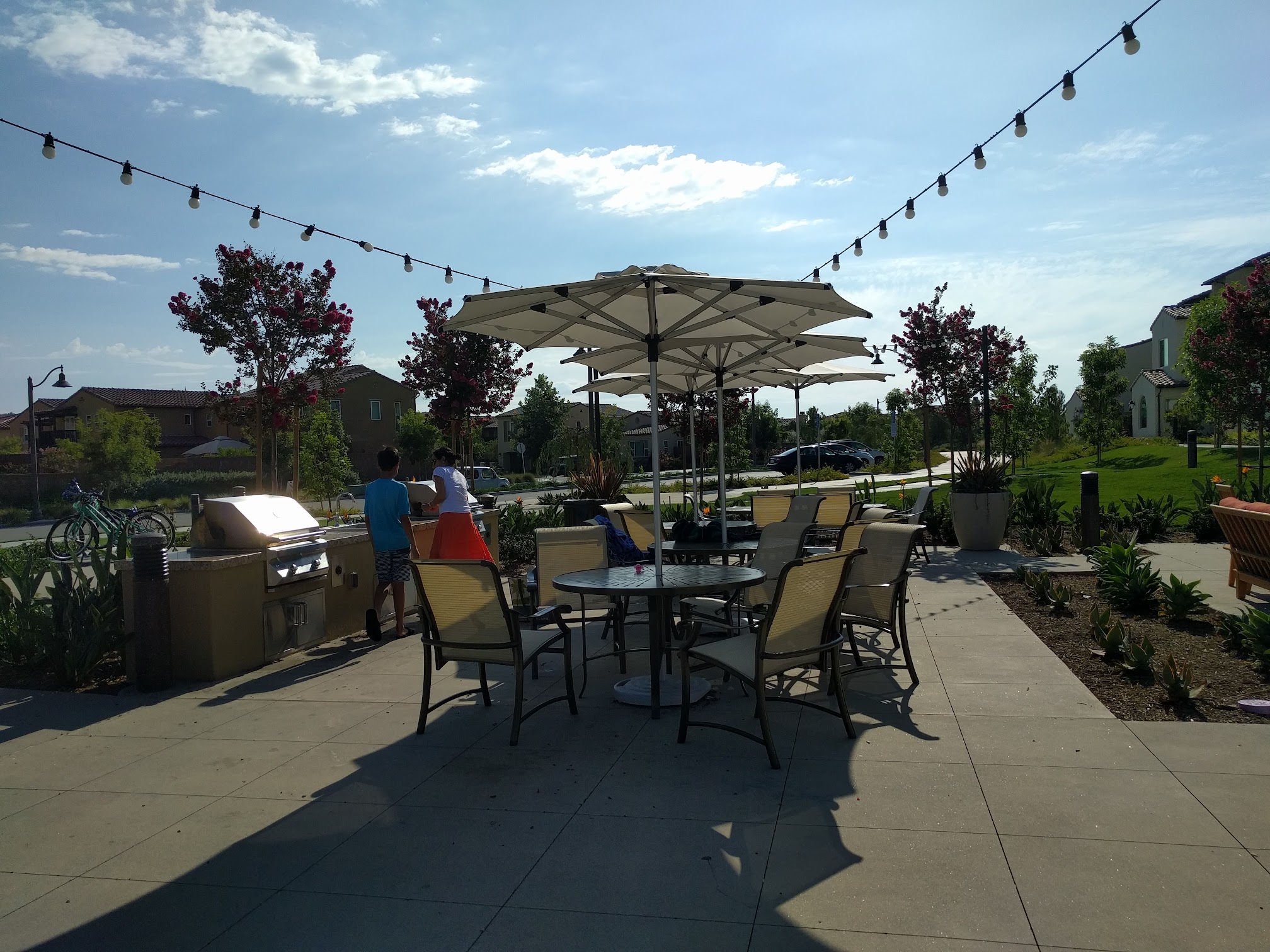 Very nice neighborhood pool (residents and guests only). Also has hot tub. Bordered by an outdoor seating area with gas fireplace and grills that residents can reserve. Also has kiddie pool.