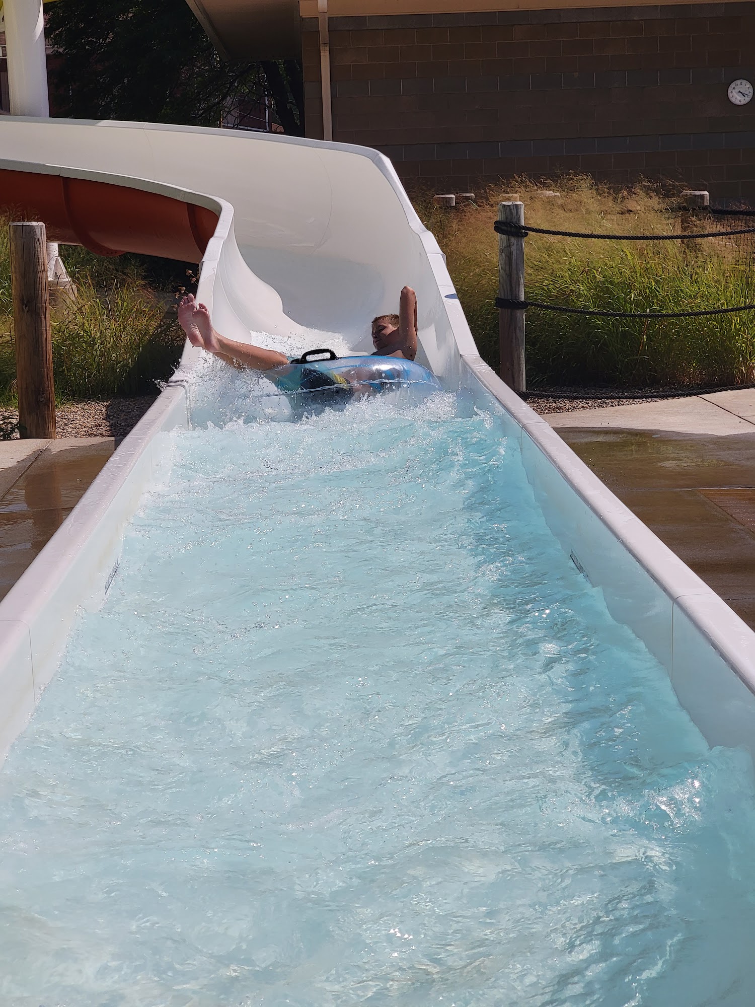 Spacious with great staff and clean environment . They townhouses and u can ride them with tube floats. The staff is friendly and one of the cheaper options for a swimming facility at $12 a person when I visited . I think it’s cheaper if you live in the county. I’ll definitely visit again . It has three areas . One main pool , a spray park for smaller kids and the slide area . Also has an area to order and eat concession style food. Clean restrooms with hot shower water . Also like the shower heads outside the pool for a quick rinse off