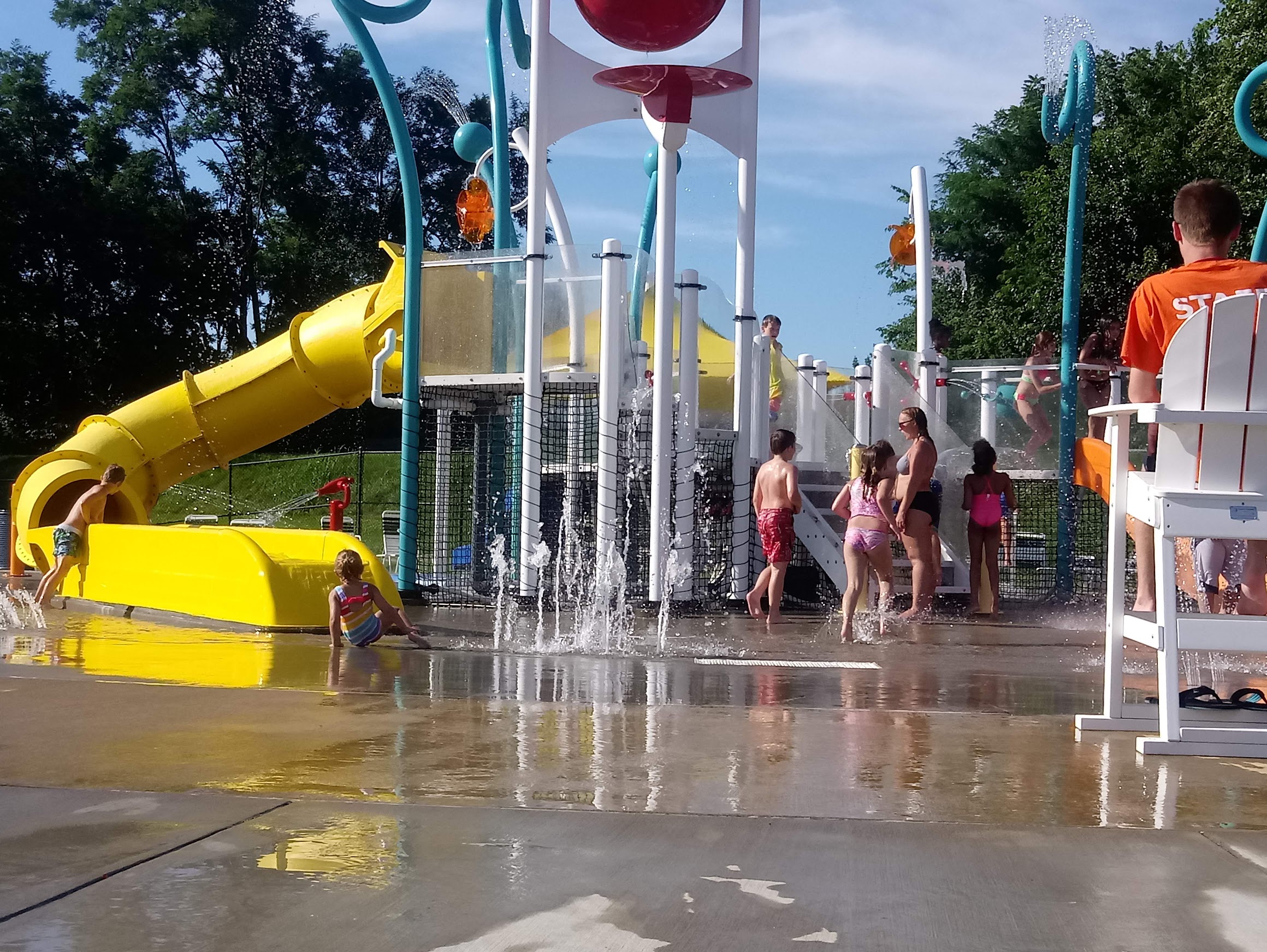Seasonally run facility with heated pools and slides, plus a splash pad.