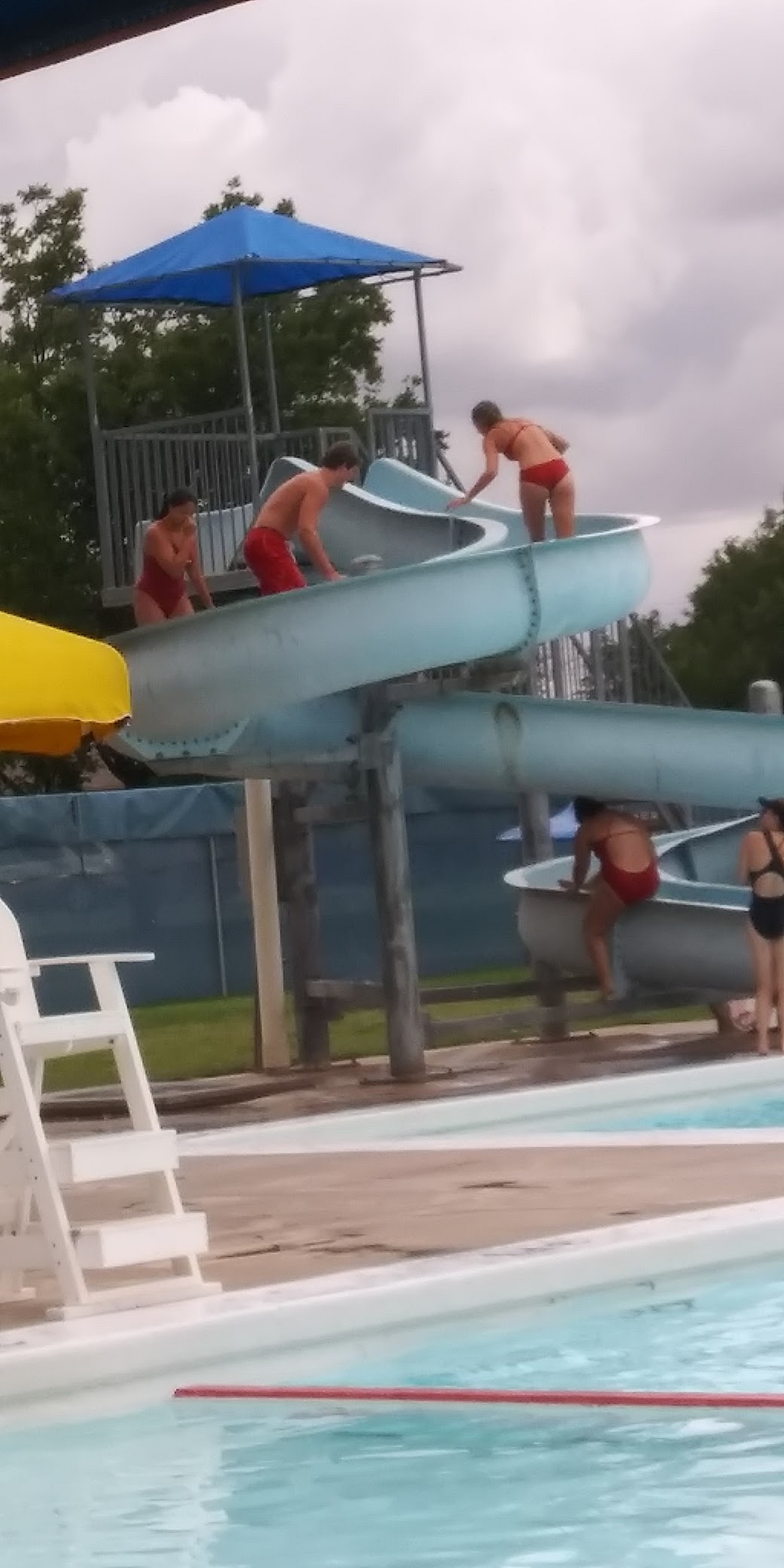 Public city pool with a diving board, water slide, and kiddie area, plus concessions.