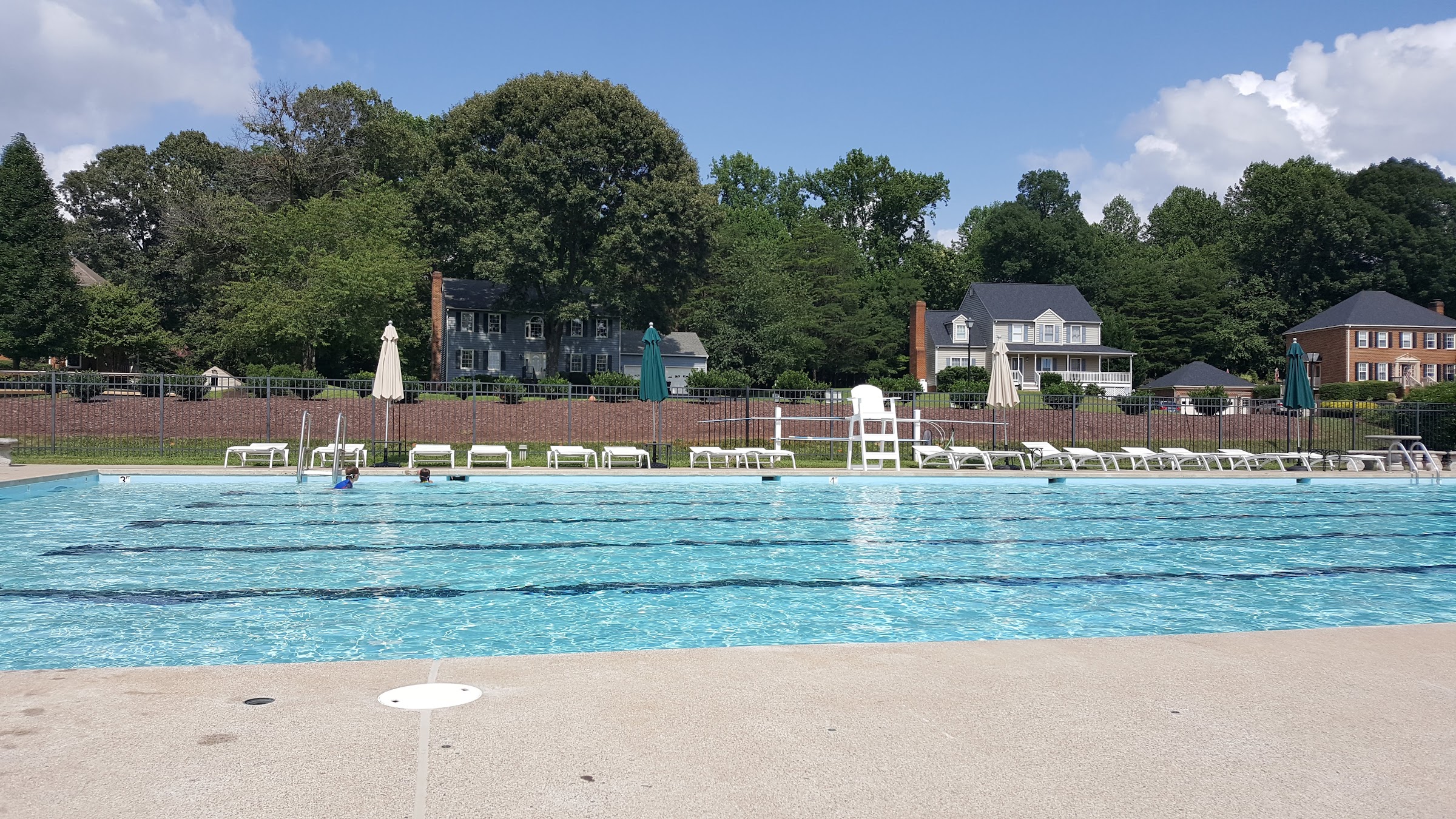 Our HOA runs a pretty sweet pool. There is a kiddie pool and a regular pool, no deep end really, no diving. There are nice lounge chairs, many new this year. The water is clean and the lifeguards are vigilant. There is a shaded deck with tables if you want to picnic. You can buy memberships up to a limited number per year and some people think we sell too may because it gets busy enough there may not be a lounge chair but most of the time that's not an issue and it is fun to have such an active pool. This is the home of the FAST swim team which is a great activity in the summer for our younger people to be fit and a positive social environment and a pretty competitive swim team too.