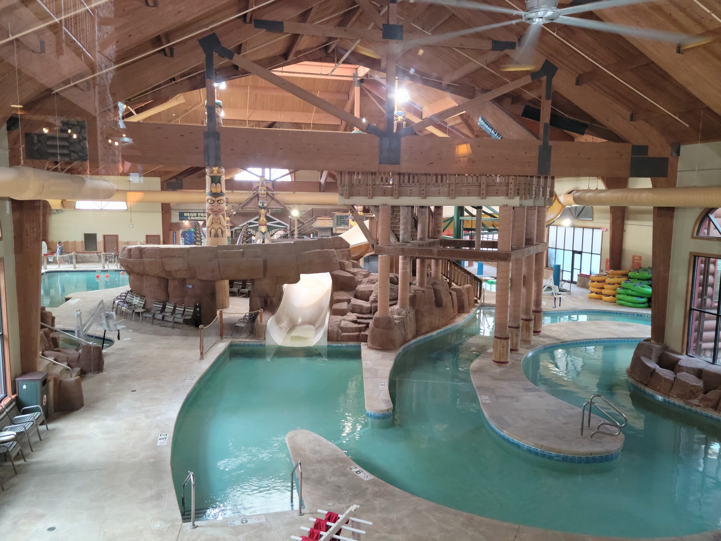 Hey! I read the reviews before I went up and they are so mixed I wanted to give it a chance. It was my husband, my two kids and me. We stayed in a two queen, one pull out bed room with a fireplace and patio. First of all, the beds are not queens they are fulls ( no big deal but come on don’t lie) the pull out bed was the same size as our beds. But overall the room was decent, had a good amount of space and the patio was bigger. The patio was nice but it’s supposed to be a smoke free facility (which I know they cannot control if someone smokes) but everyone seemed to be smoking on their porches which sucked. When we checked in the staff seemed unimpressed that people were coming and non-understanding of any questions we asked. She seemed irritated and when we did ask about the passes we got (birthday bash, breakfast pass, and family fun and food) we weren’t really given any information and if she did answer our questions it was not the same information given when I booked back in February or called on Friday. We paid the hold and parking at time of check in only giving authorization for one card to be charged, yet at 2am the following day they charged my other card on file a hold too for $200 also, when we went to ask about that we were given an indirect answer that still left us confused. The staff in bear paw are unprofessional and were gossiping about everyone who came in Spanish. Most staff seemed very dismissive and not wanting to help. Going to the gift shop was hit or miss, most employees didn’t want to help you and were rude. The water park was pretty awesome, decently clean, life guard regulated and helpful.