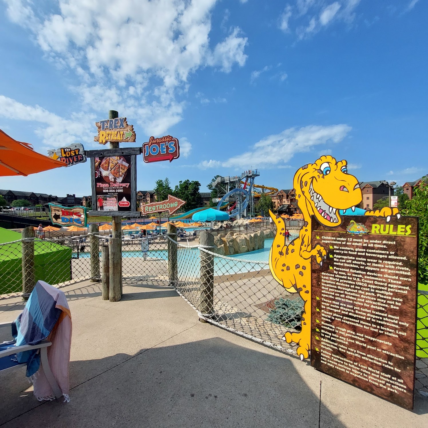 We stayed at Glacier Canyon Lodge during the week of Fourth of July for a dance competition. By far the Lost World Water Park was our favorite. Lots of room, pools and activities for all ages, and plenty of food and beverage options.