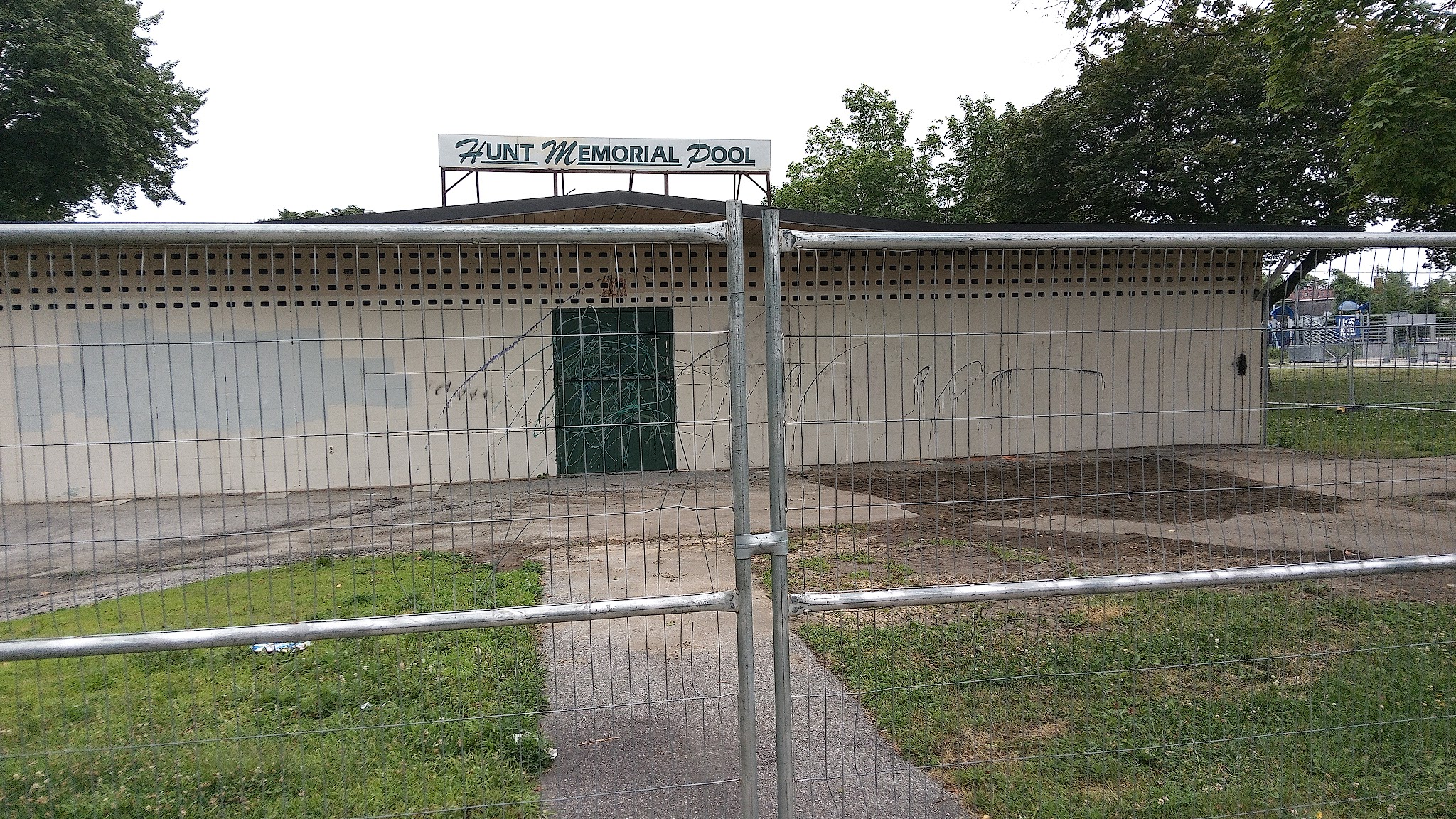 Hunts Pool is No Longer In Use. Splash Pad is only a couple years old. Great place to cool off & let children play. Def for Younger kids 0-12yrs.