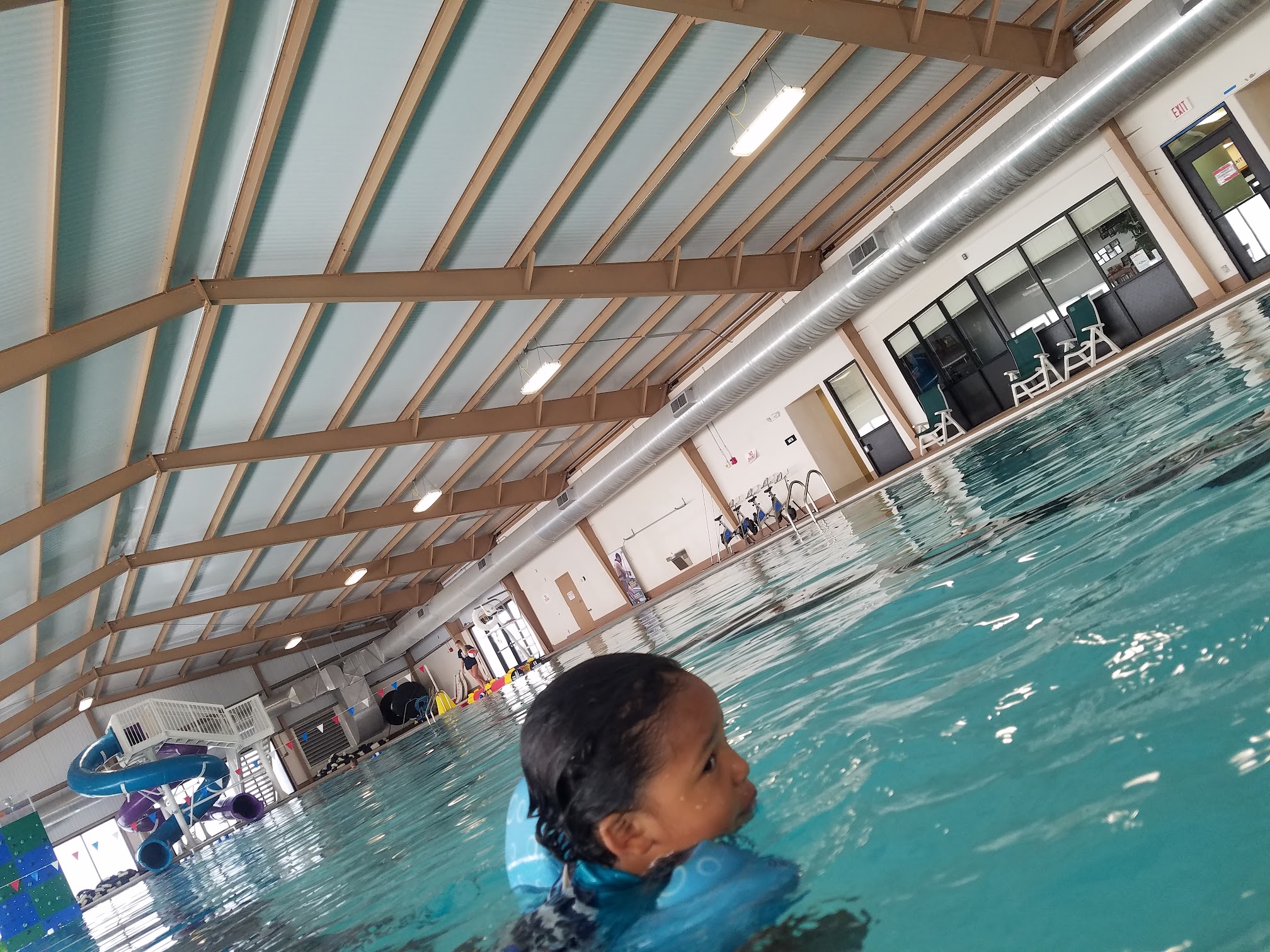 Very friendly staff, clean lockerrooms, clean pool. The pool area has a rock climbing wall and two spiral water slides. They can pull out a tiny slide for the younger kids. They are currently doing a early Tuesday mornings water fitness board balancing class. They also have a normal water fitness class at 5:30 on Tuesdays.