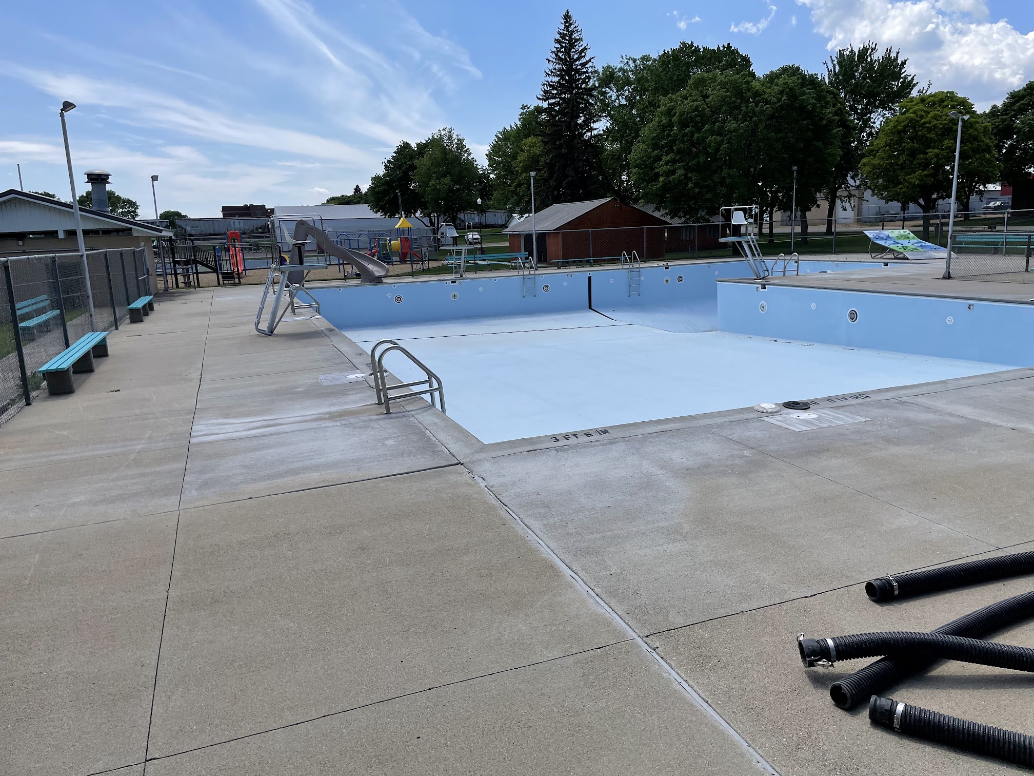 The Fairfax Swimming Pool, located at 200 1st Ave SE, Fairfax, MN, is a popular seasonal outdoor community pool. It offers a family-friendly environment with amenities such as a zero-depth entry, a large water slide, a diving board, and a concessions stand. The pool provides various activities including open swim, lap swim, swimming lessons, and water aerobics, typically operating during the summer months.