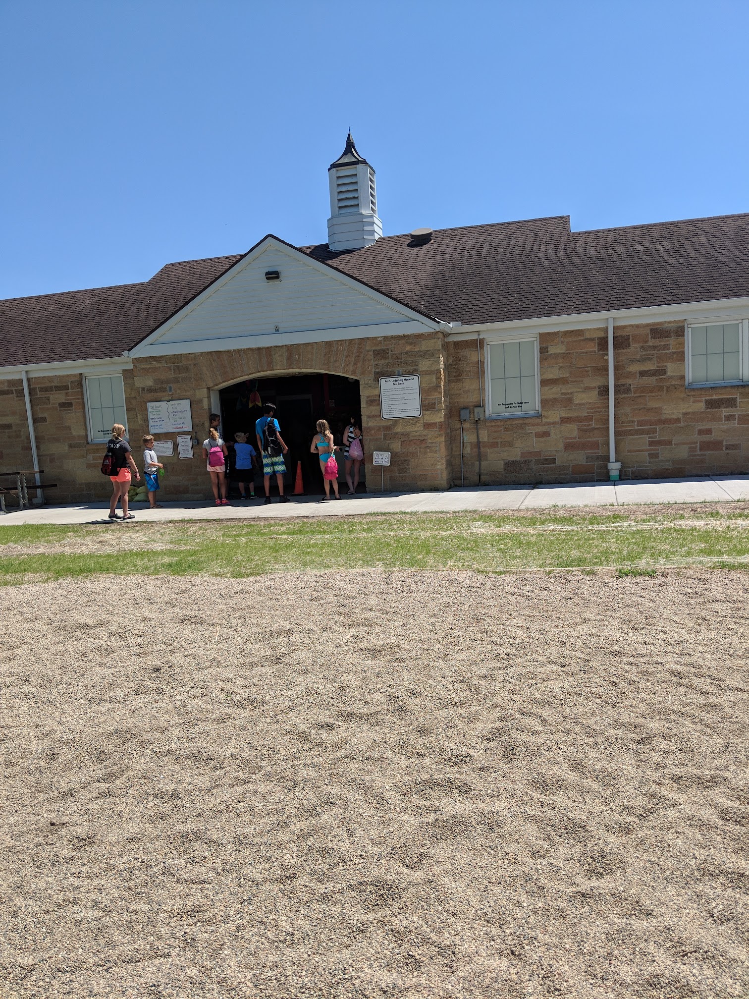 Outdoor public pool where kids can take swimming lessons.