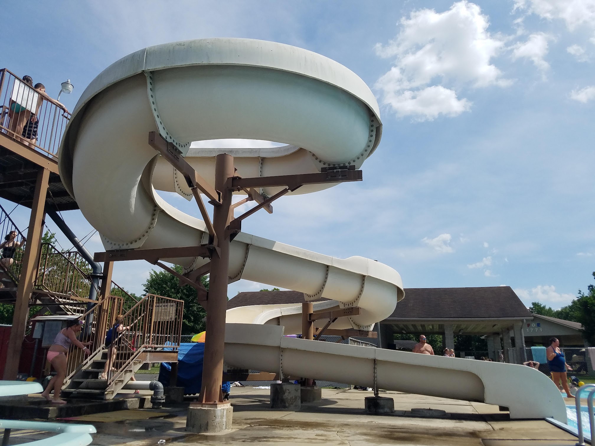 It's a great place to enjoy a hot summer day in the pool! Something for the whole family! Diving board, large &fast slide, two smaller pools just for the little ones as well. Big thumbs up from us 😁👍