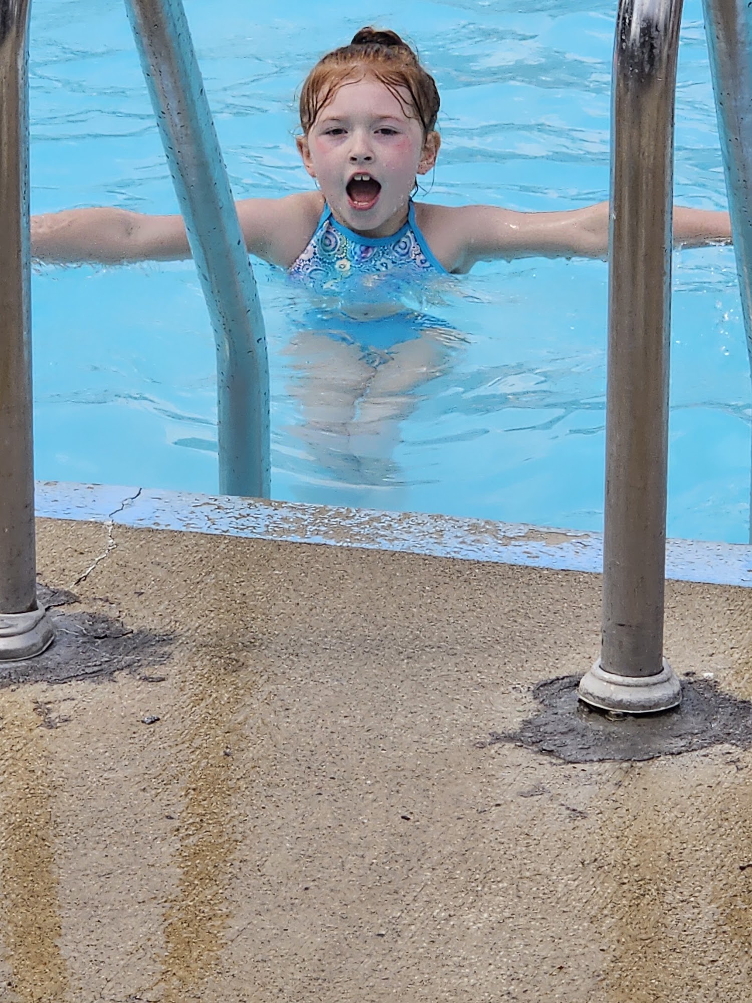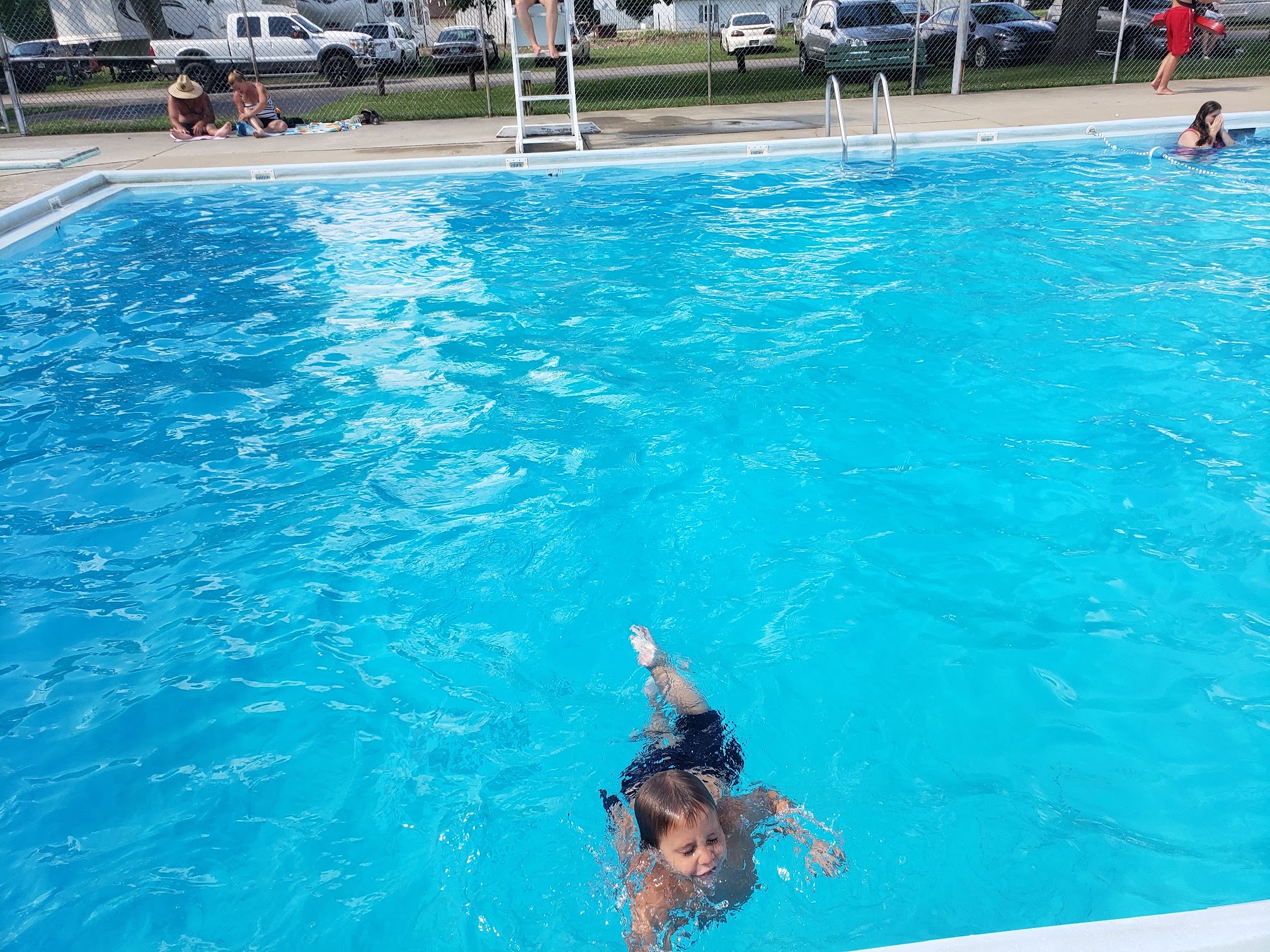 It is the best pool pretty much. I love it. The kids there love it, and they have a little kitty pool for babies, and grownups can go into and swim.