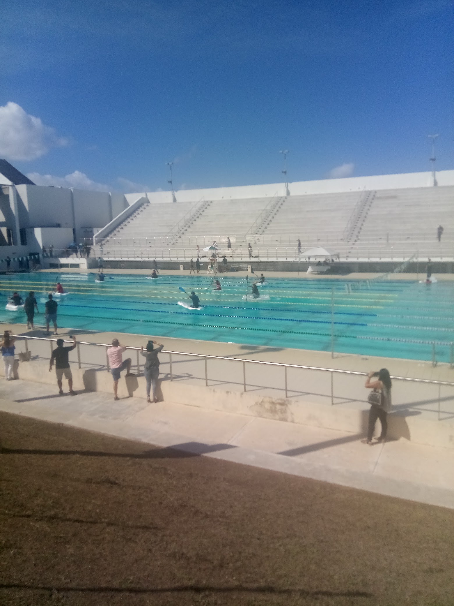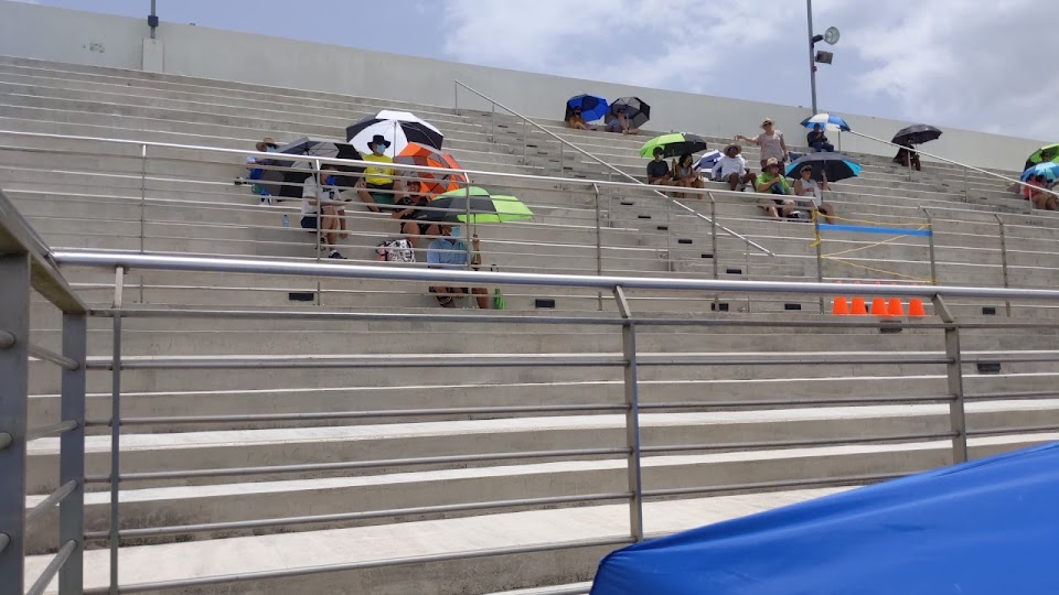 It is amazing to me that a university would invest so much money in a facility and not take into account the place and the weather where the facility is being built. Likely for the same money they could have built a natatorium like the one in San Juan, under roof, which functioning would not have been affected by the rain and the sun that Mayagüez is known for. It is inexplicable to me how someone would choose this design for this location. In the bleechers the sun is unbereable and if it rains competitions need to be cancelled! This facility needs a roof.