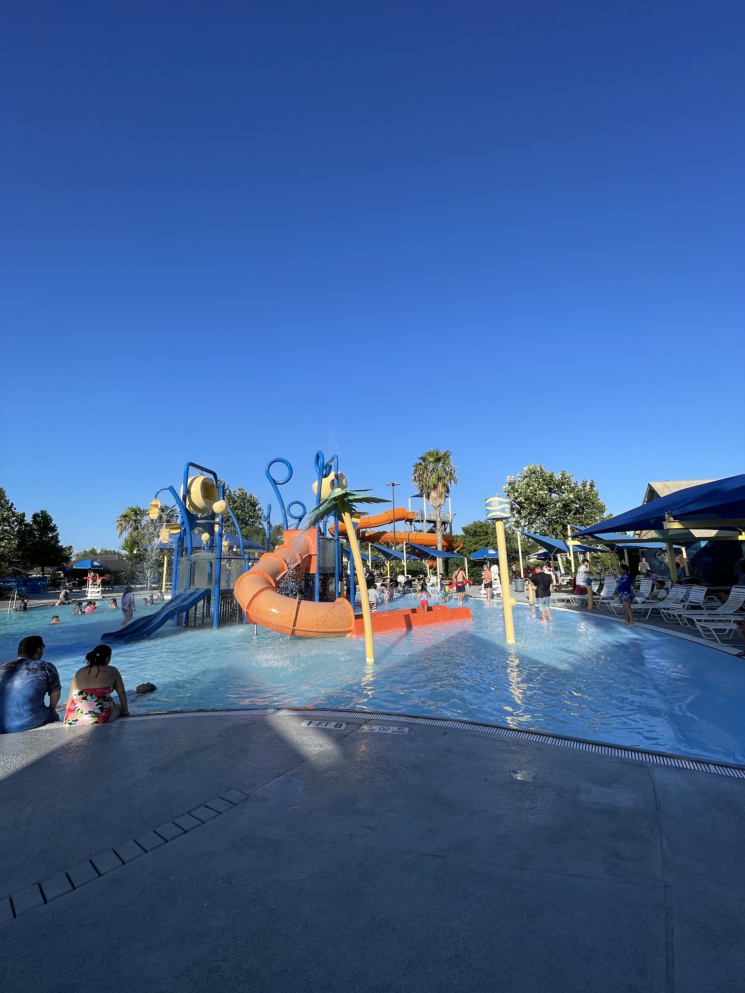 It’s a good park , just wish the water was a bit cleaner, and the lazy river is small but the sprinkler system hasn’t worked in a while . All the slides were open . Got lucky and got a table under the shade of trees . My kids had fun. You can take an ice cooler with waters and snacks . You can probably take a whole picnic. I did see some ppl with pizza boxes . So it’s cool that you can take food and drinks . We went for Father’s Day so it wasn’t too crowded. The little kids do enjoy the splash area . The big pool was closed, probably because it was a Sunday. The lifeguards are always on duty and watching the kids like hawks so that’s good.