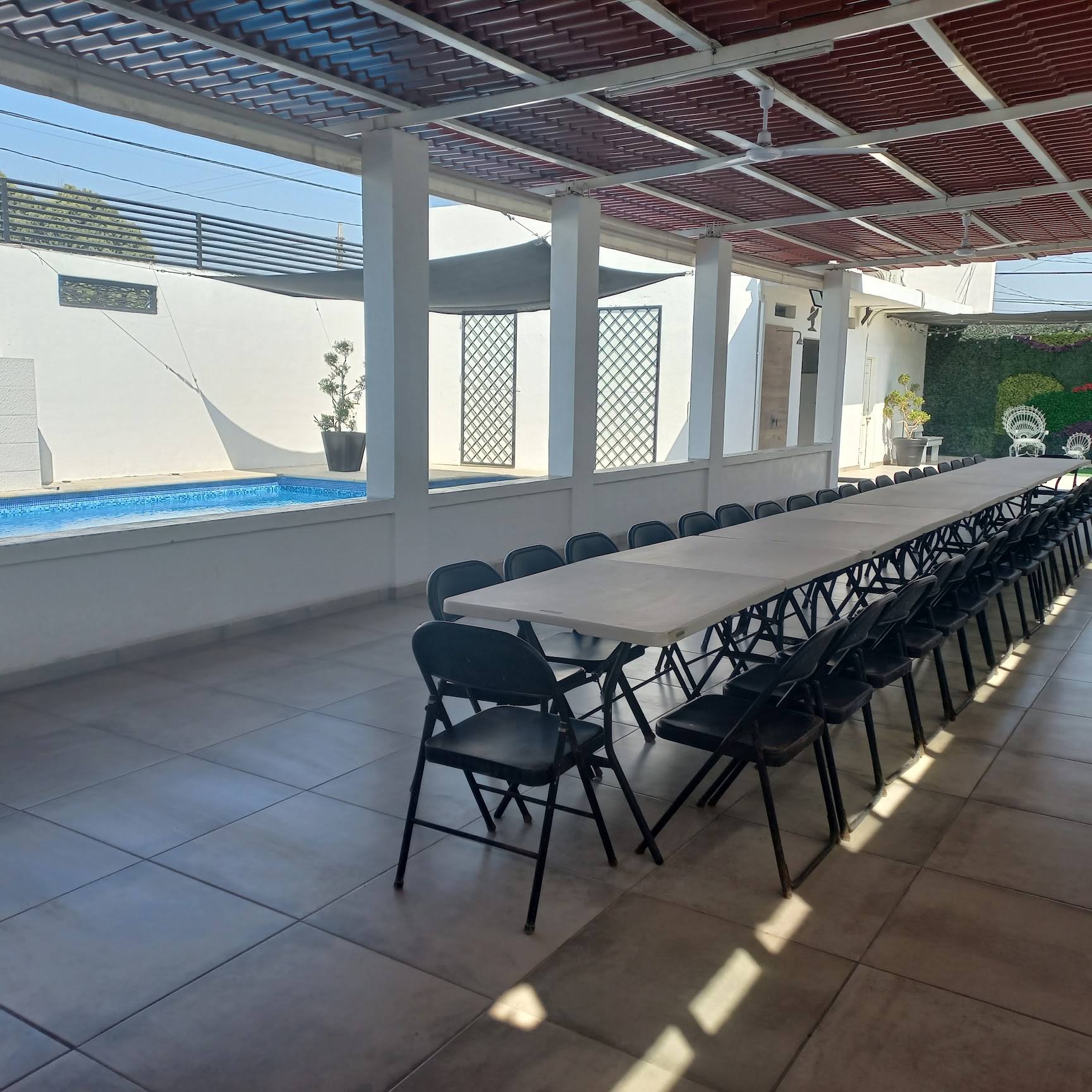 Estancia para pasar una tarde agradable y aunque su distribución no es del todo perfecta muy bien se puede pasar un albercada muy agradable tiene estacionamiento en la calle y está completamente bardeada