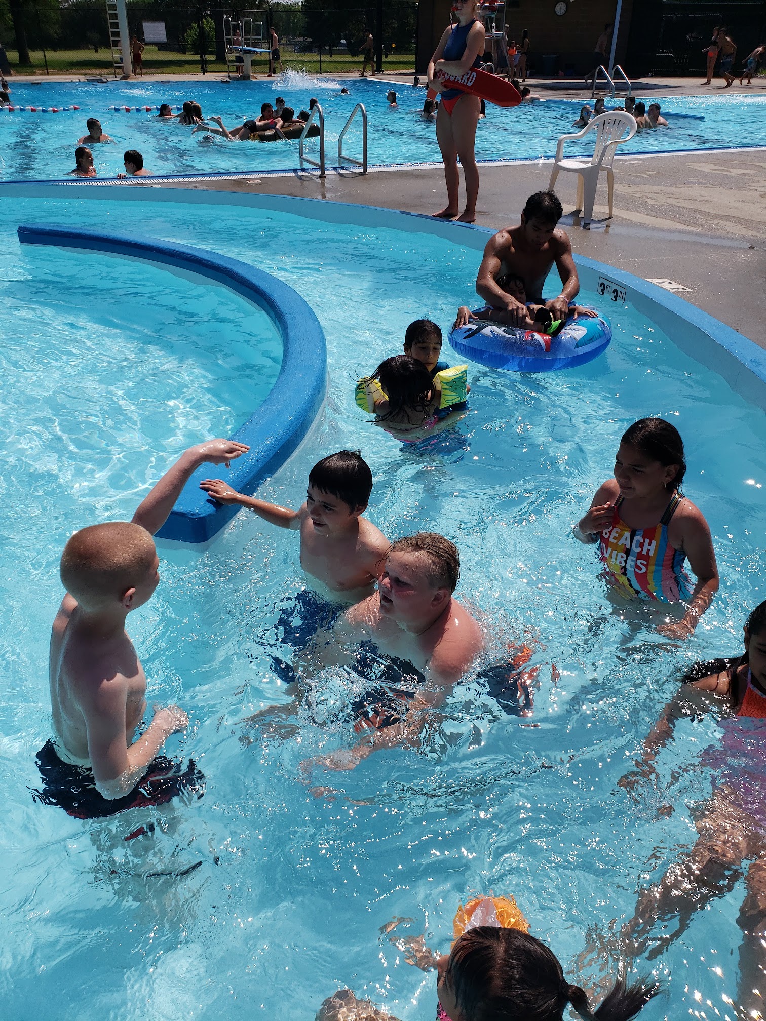I really like this pool the people who work there are nice lice guards are always watching and cops always go bye they have a very fun kitty end a awsome deep end and to awsome slides i love it here !
