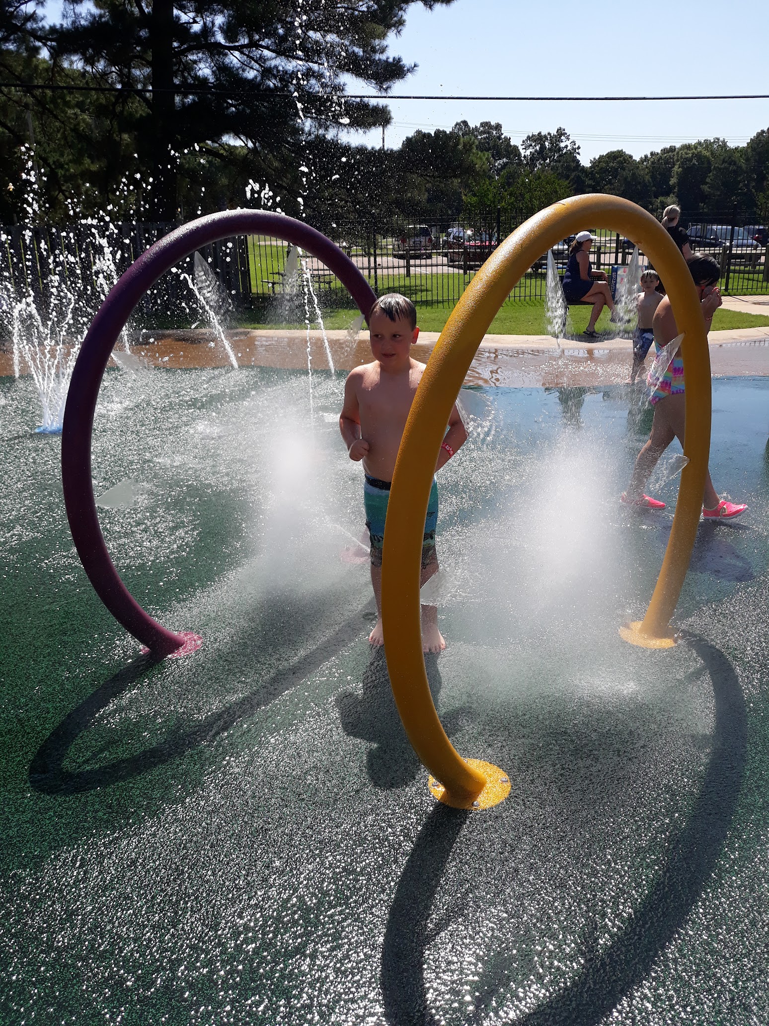 Great splash pad for a great price! Only $5 per child is a really good value for the fun kids have in the water. It has a good variety of features, from a small slide and run-through spray rings, to big fountain sprays and a dumping bucket. Perfect place for the kids to have tons of fun while staying cool on a hot day!