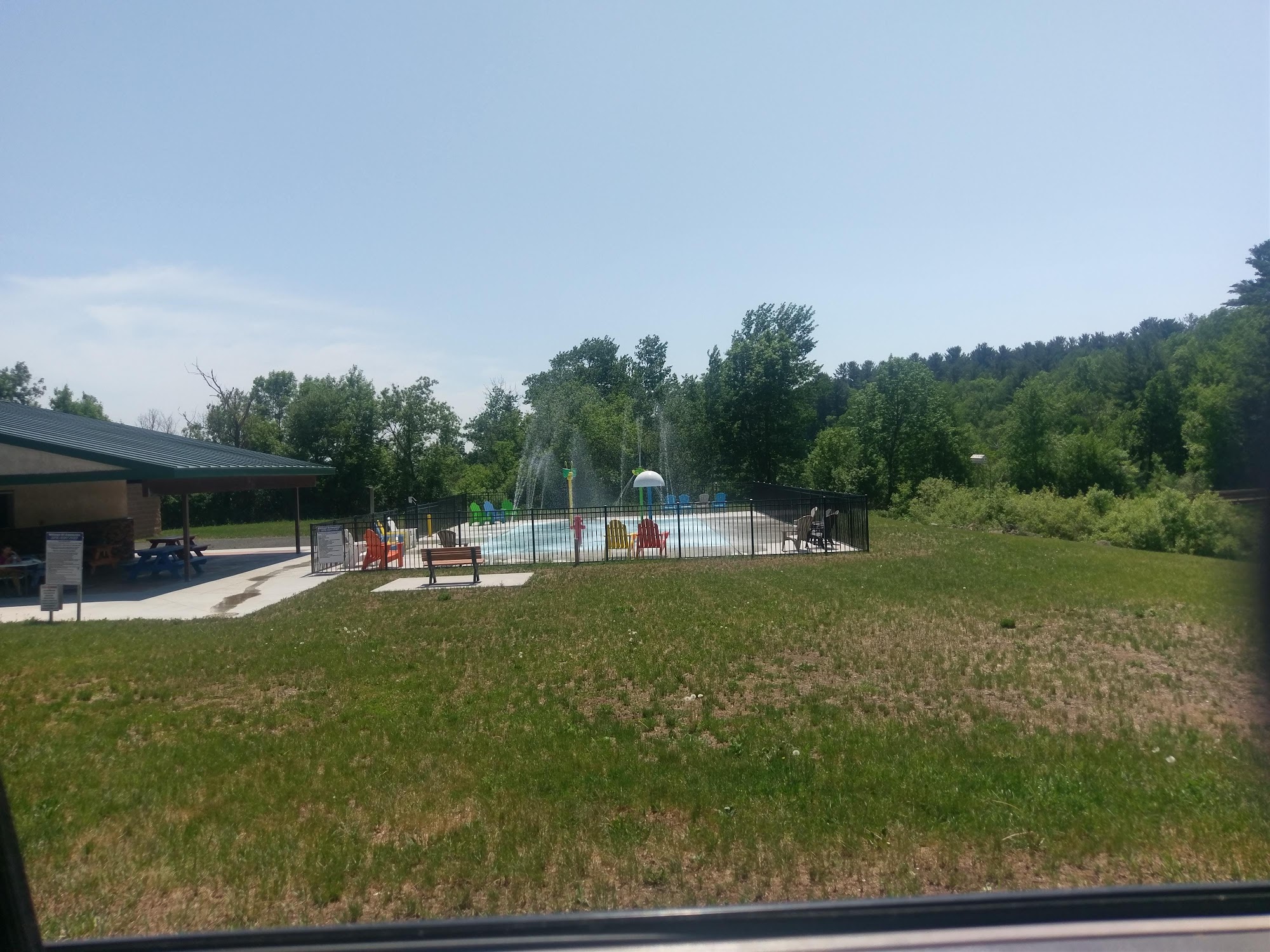 Great little park with a nice splash pad that's open until 6:30pm in the summer. Nice little playground with beach sand. Pretty, rustic bridge over water flowage. Nice exercise area but it could use some outdoor rubber flooring like other parks have in case you fall on some of the equipment. Overall a nice park for a very small town.