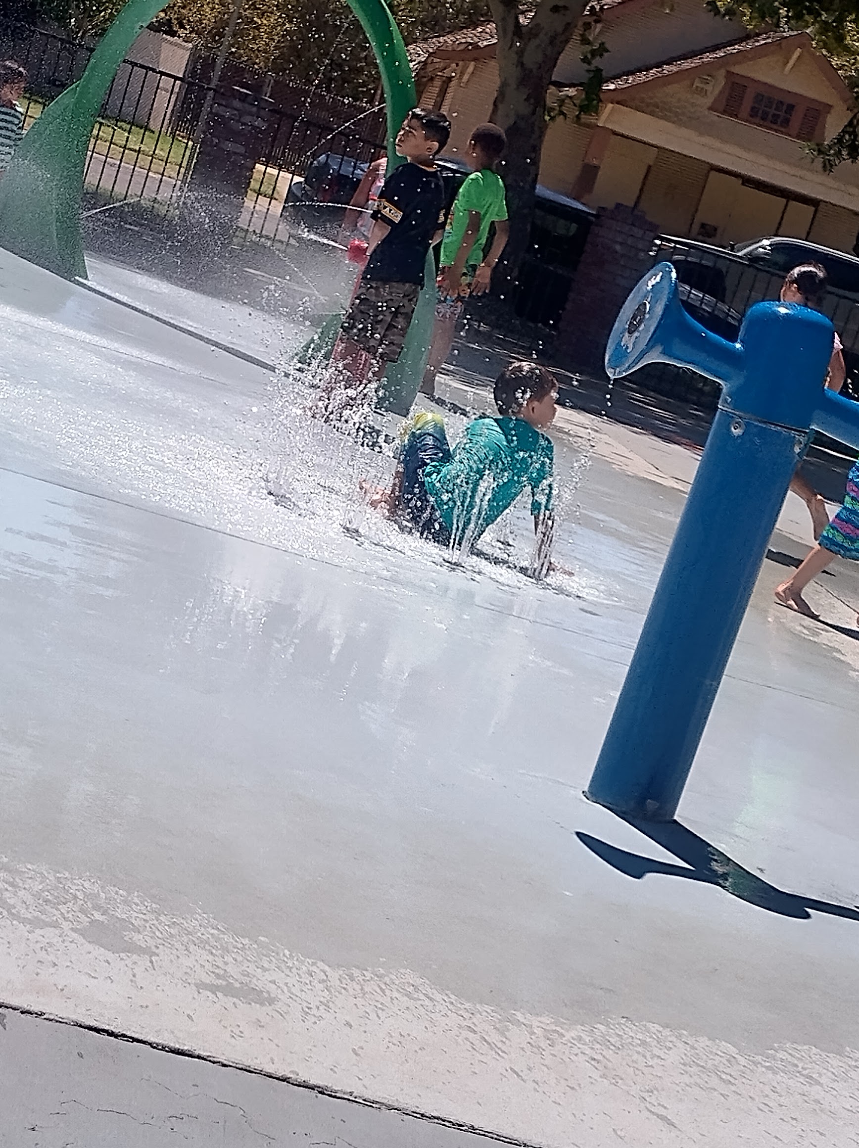 The park has lots of homeless people who carry around their entire homes with them. The park has 3 bathrooms, women's, men's and handicapped. I used the handicapped, out was clean and had plenty of toilet paper. The park has water features for the kids or anyone to use. The day I went it was off. I honestly don't know when they turn on the water features. I've visited the park when the water features were on. I was doing yard work once and an entire class went by to go to the park and the water features were on. I think if you are a school class or non profit you can have the water features turned on. It is a great little park to unwind or even BBQ if the homeless people haven't taken over the BBQ area. July 14, 2025 Something I've never seen before, probation officers frequent the park regularly and hang out. I've never ever seen that before. The amount of homeless people has diminished somewhat, though, they are still here. There is a solar powered police surveillance camera in the park now.