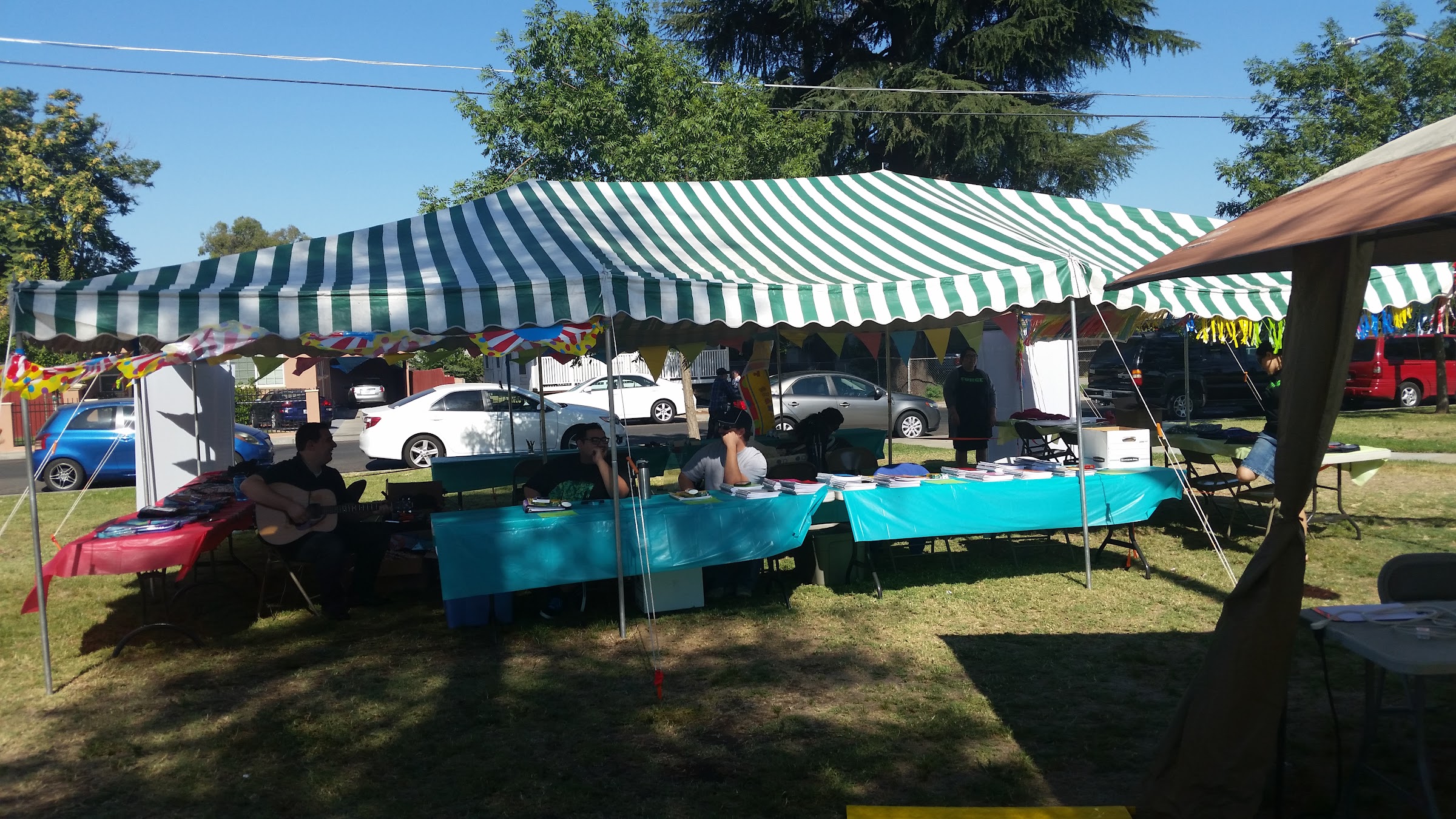 Minimal seating and shade, not the best neighborhood, but it’s a decent area to cool off. Definitely recommend to bring a pop up and some chairs.