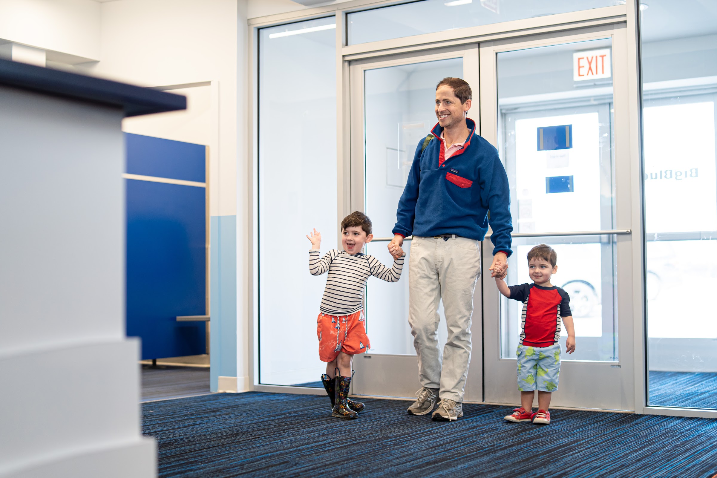 The pools at Big Blue Swim School are typically kept at a comfortable and warm 90 degrees Fahrenheit (approximately 32 degrees Celsius), ensuring an optimal learning environment for all students.