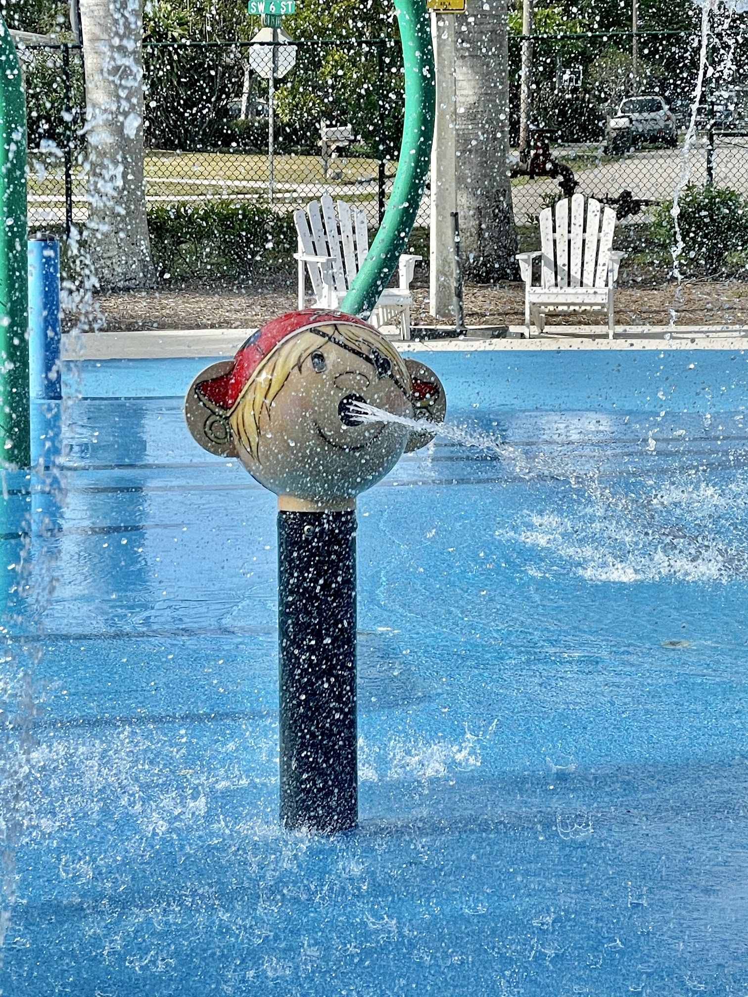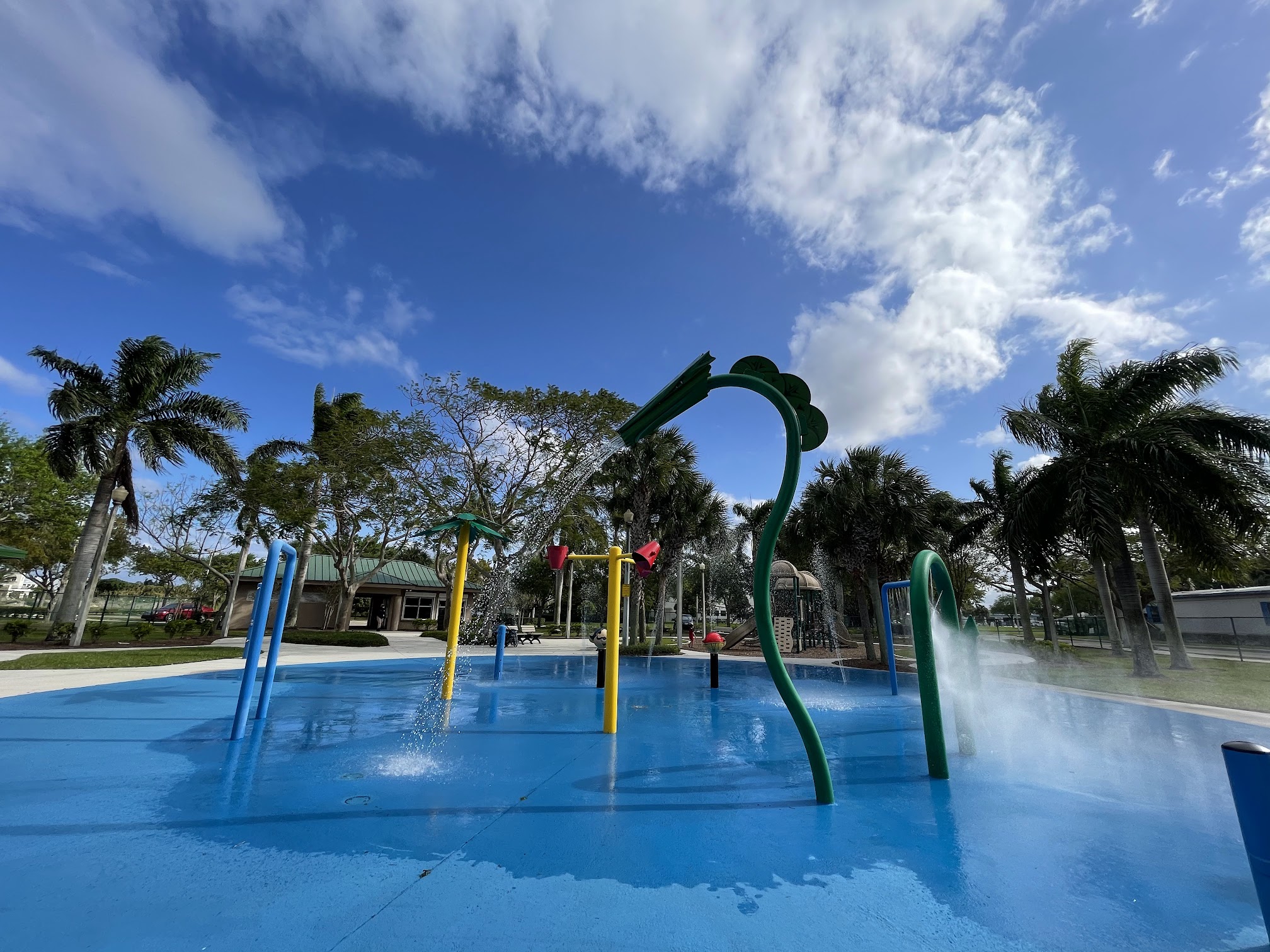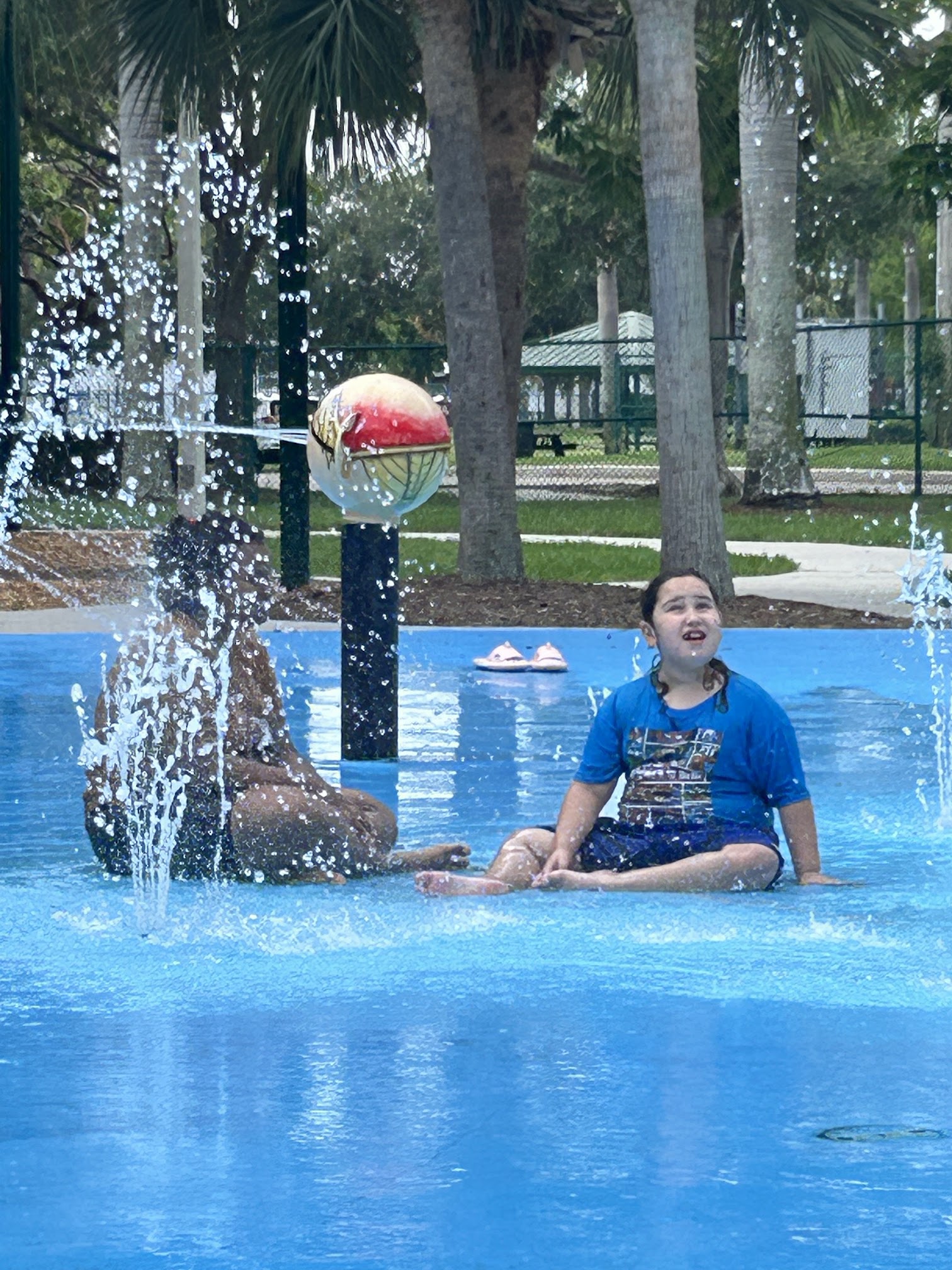 What a great play area! The splash of is great! The playground is fun for all ages. It’s got picnic tables, pavilions and benches for all to sit and relax. It’s all fenced in which makes it great for little ones to run. Outside the playground area they have basketball courts. I’m super happy to have found this place 😃