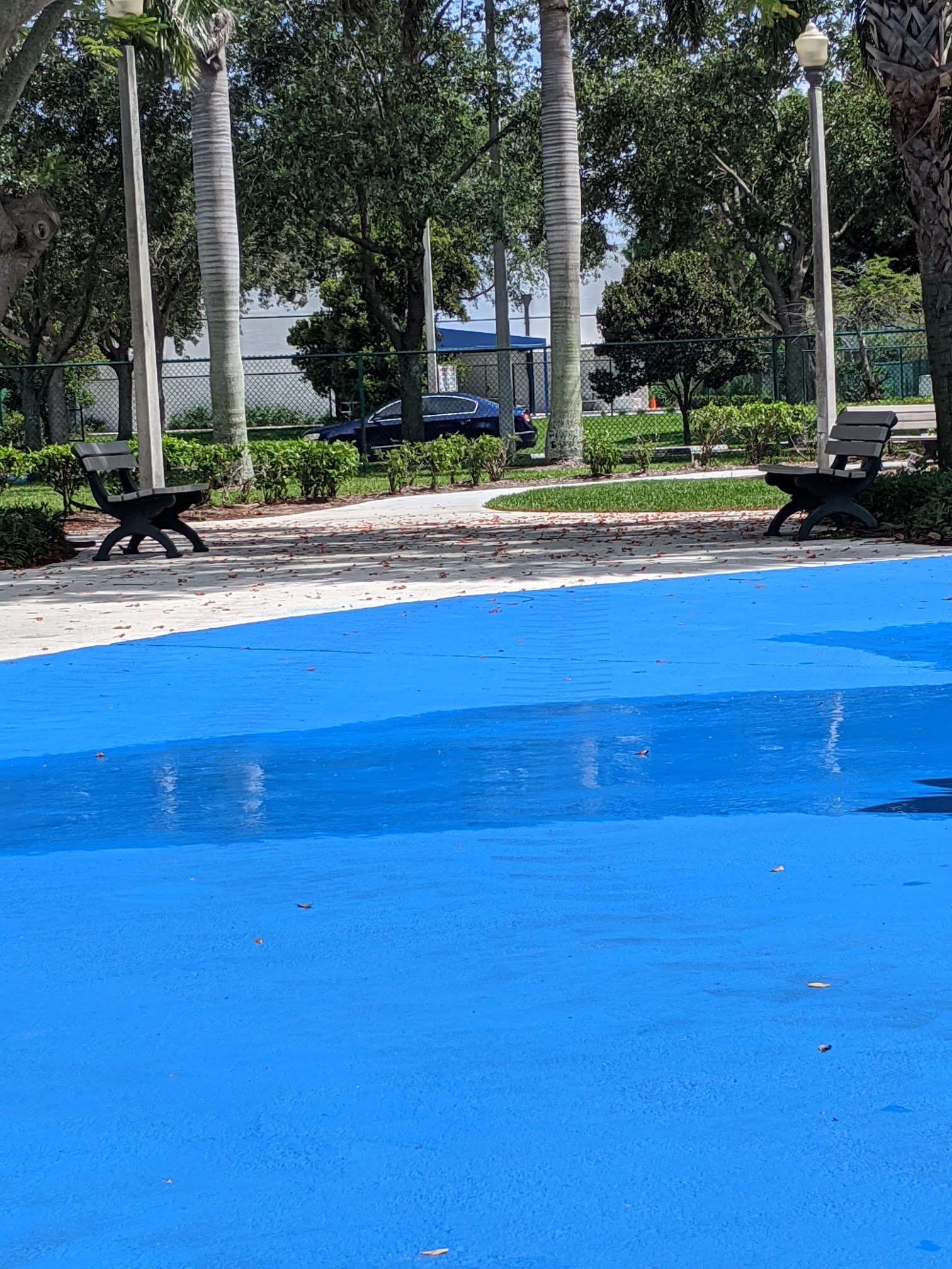 Update: These are now 6 new pickleball courts with nice spacing between each court. There are no wind screens on the fencing or divider fencing between courts or on baselines so be ready for balls traveling between courts. First come first serve with rack system. Naturally, it’s free to use. They do have lights but I’m not sure if quality. Could be dawn to dusk schedule. Overall, a welcome and needed addition to the pickleball playing community with free parking next to courts and plenty of shade. Original review: Great park in the south part of Delray Beach next to I-95. Two hard courts with nice space for singles or doubles with seating area. Also includes blended lined for pickleball but you will need to bring your own net. Plenty of free parking and shade trees to rest between games. There is background noise from the nearby interstate but not that bad.