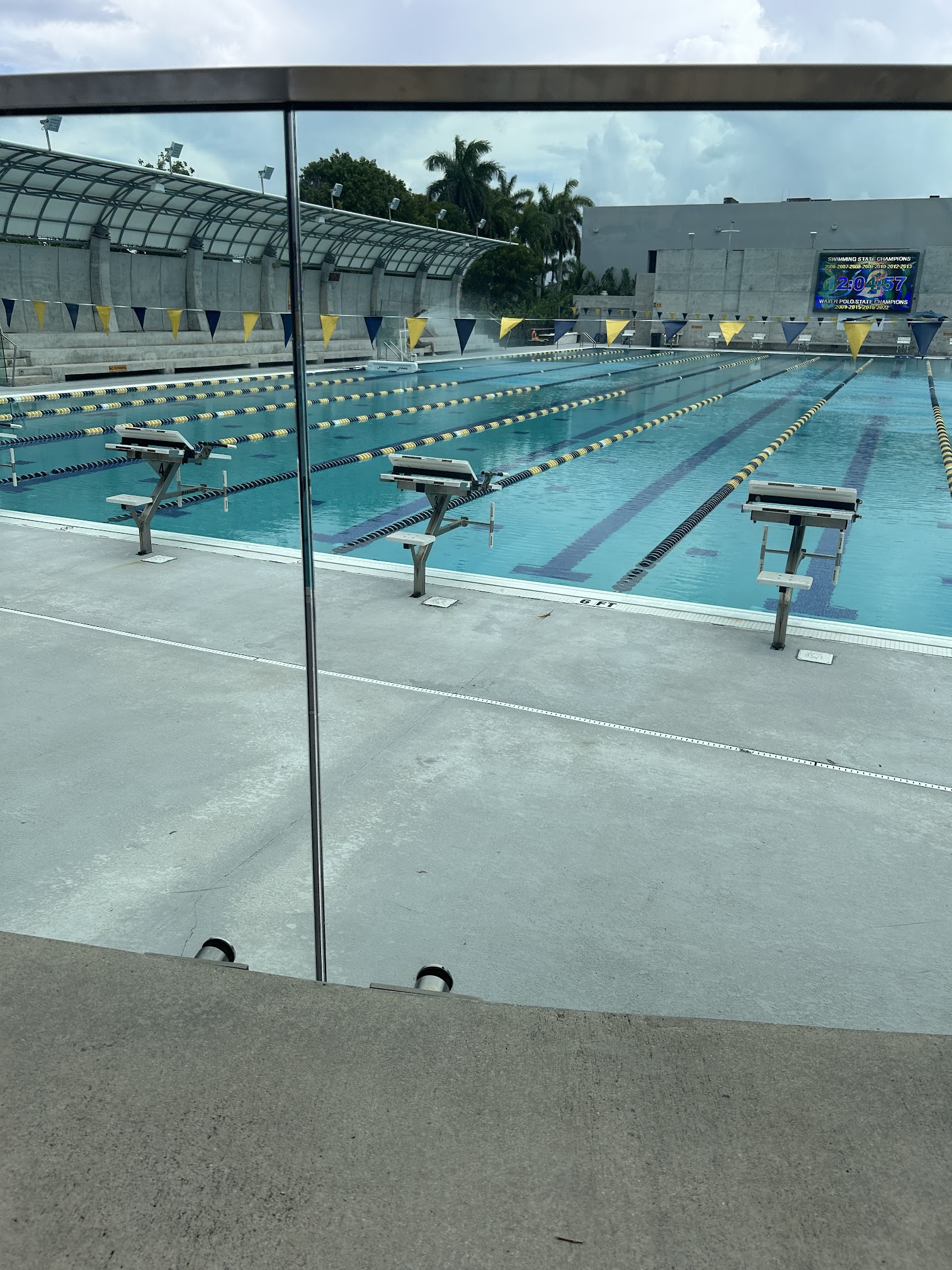 Top of the line facility. Covered spectator areas at pool level and raised above it. Clean locker rooms and restrooms. Convenient location just off the Fl. Turnpike. Just hosted a high school charity water polo tournament this weekend and it was a blast.