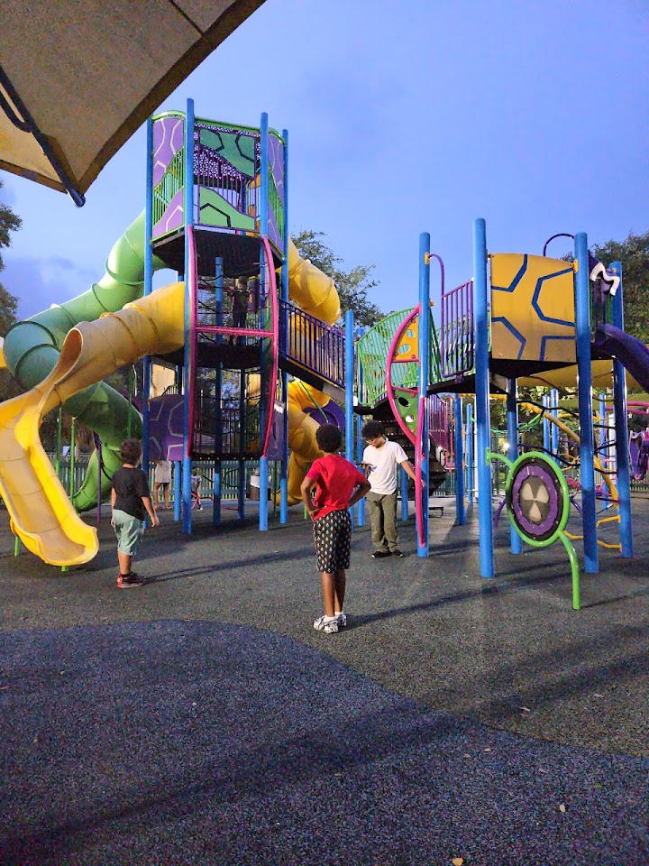 What are people saying (AI review summary)? This is an awesome, free, and completely fenced-in splash park with plenty of parking and nearby bathrooms. Parents appreciate the four big umbrellas providing shade. A highlight is the big bucket feature, which tilts for about 10 seconds before spilling. It's highly recommended as a beautiful and fun place for kids and families.