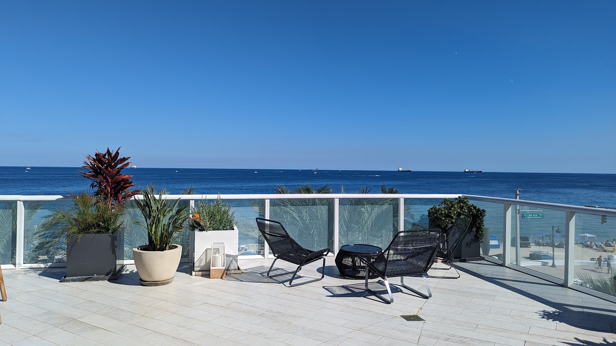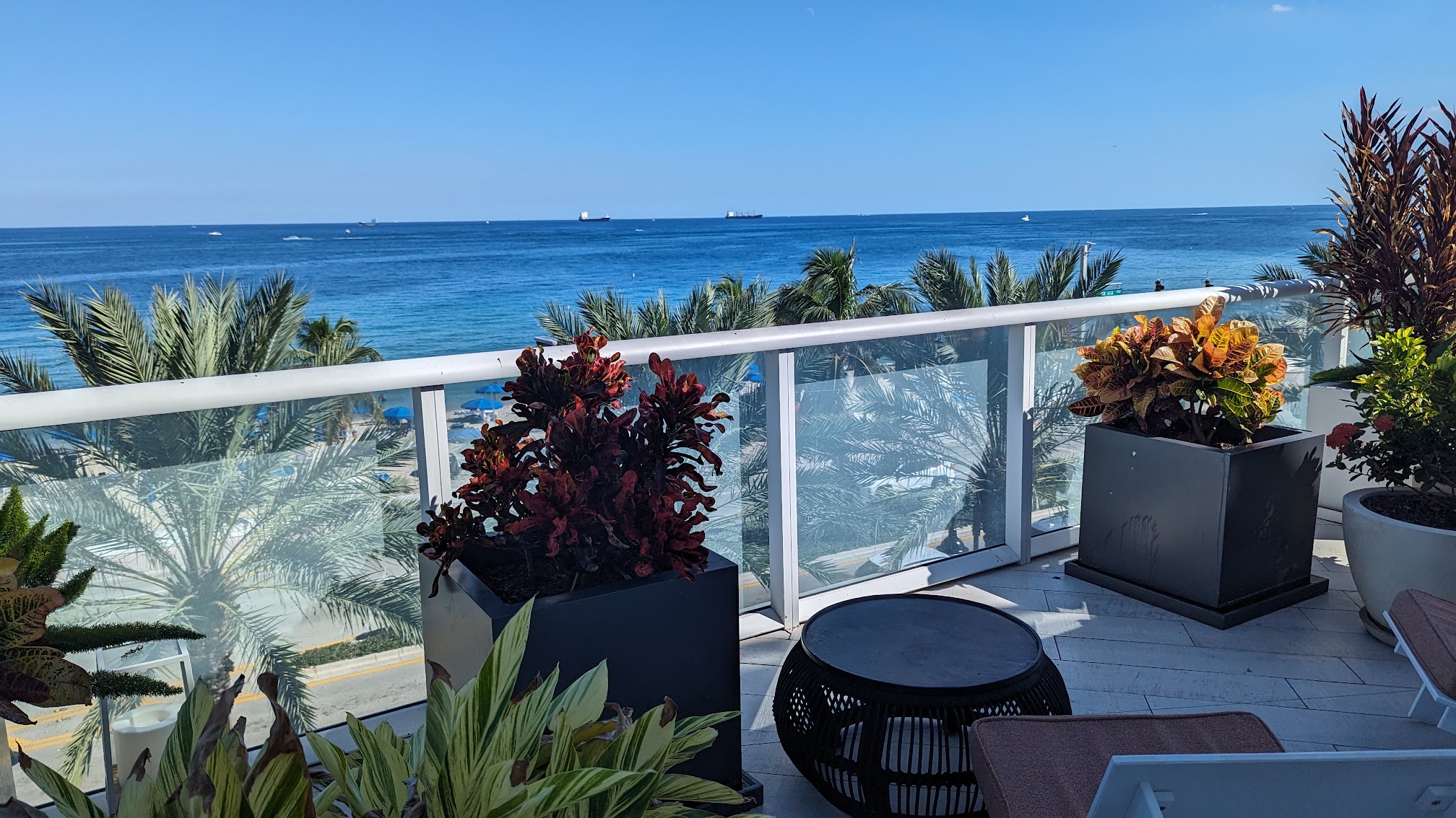What are people saying (AI review summary)? Reviews are mixed, with many praising the hotel's beauty, consistent quality, great service, excellent menu, and spectacular ocean views from the pool deck with ample seating. However, a significant negative experience highlighted an overpriced cabana with very poor, slow, or absent drink service. The 'Wet Deck' is noted for being beautiful but can get extremely crowded, with Tuesdays and Wednesdays suggested for a less busy experience.