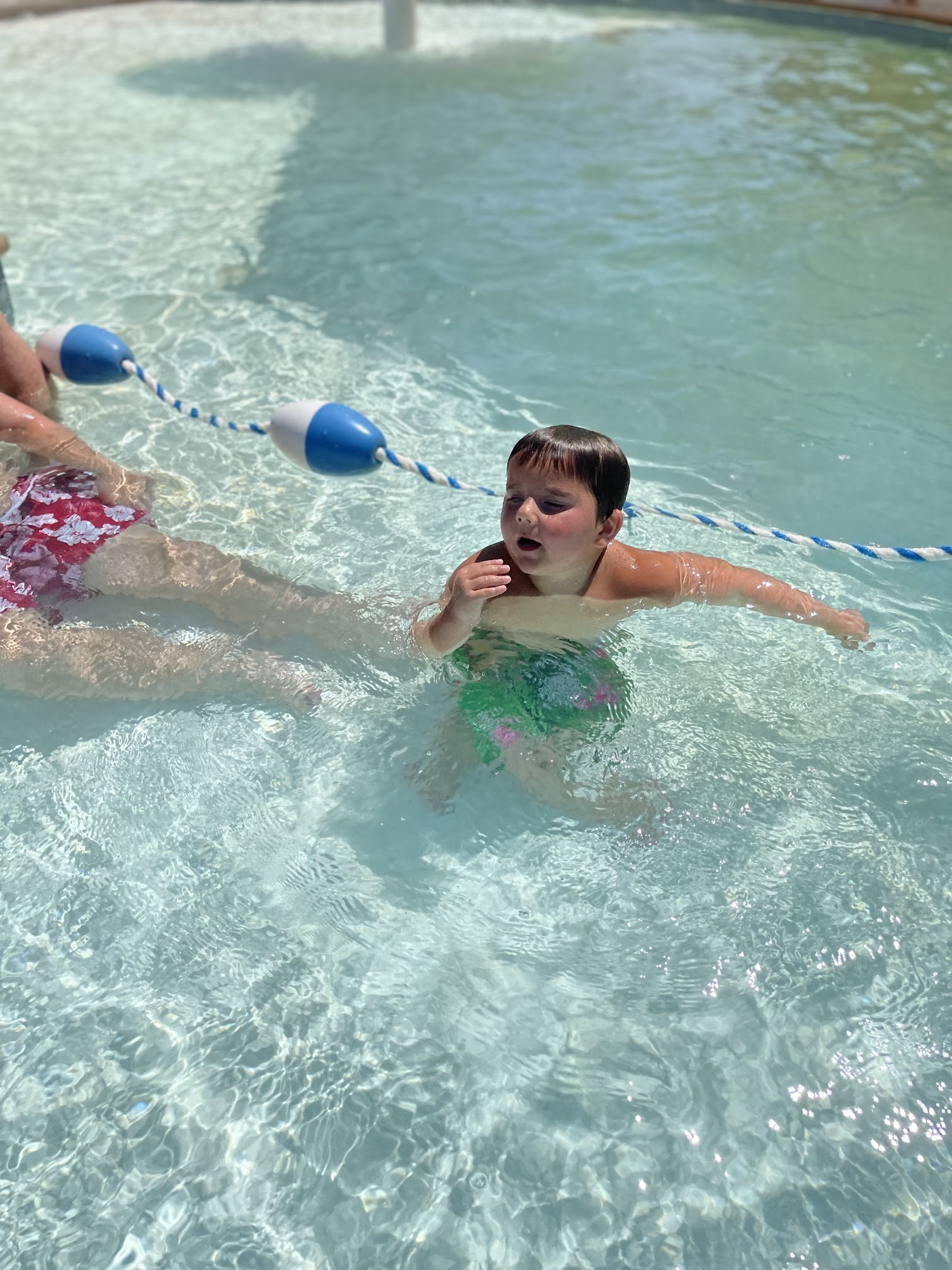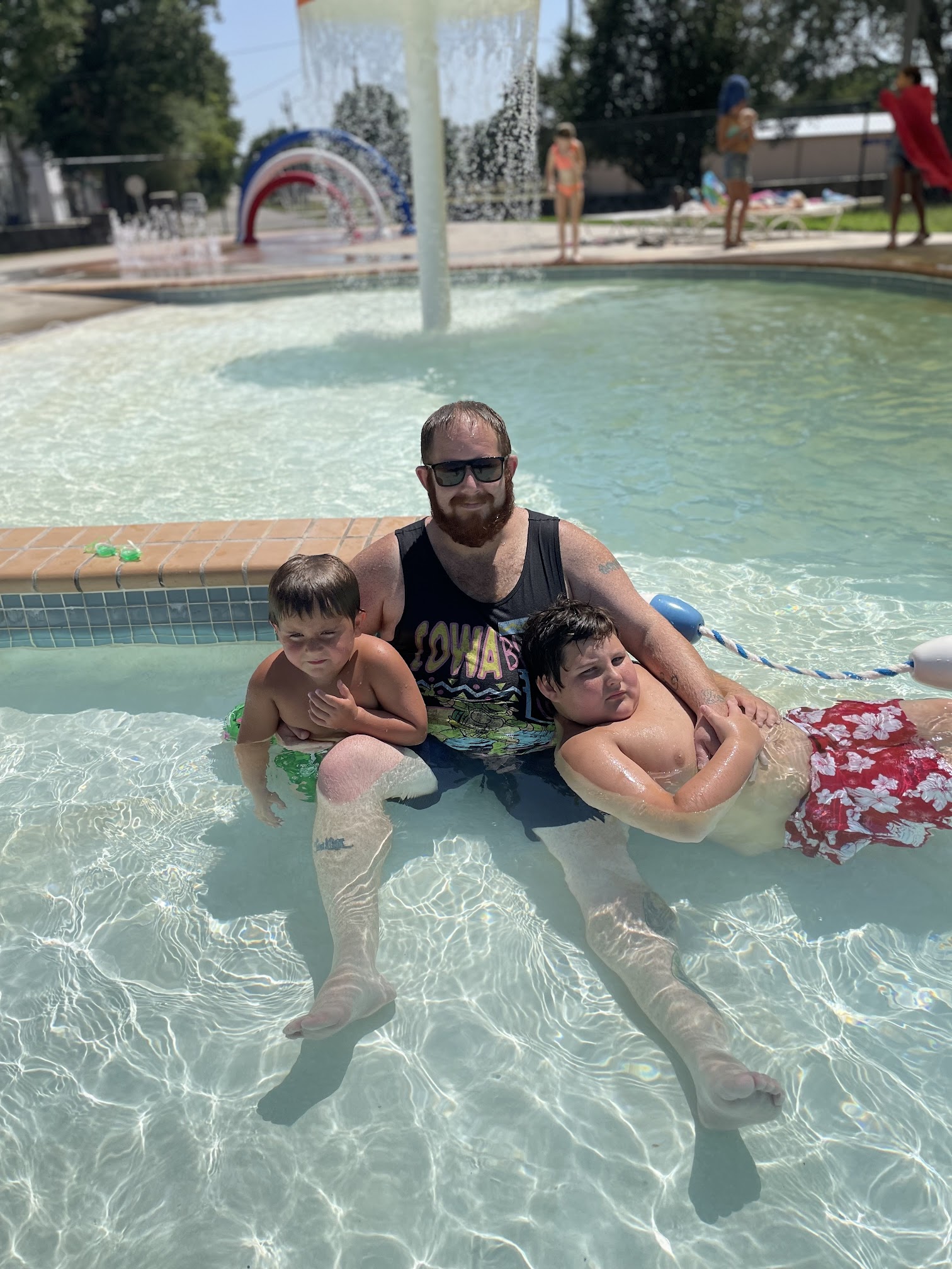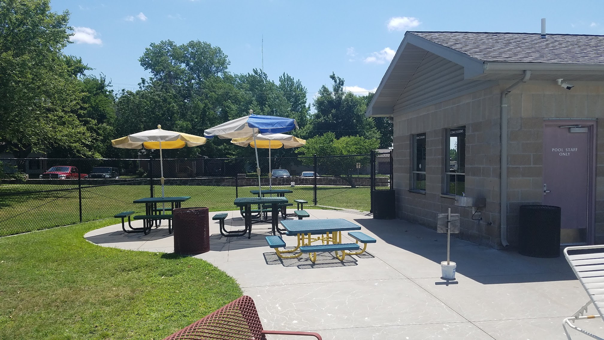 Visited in early July for an after hours birthday party. Lifeguards abundant (5 on duty)with two three foot diving boards and a water slide available. Kiddy pool area with splashing water, dropping to a diving area of twelve foot deep around a bend. Clean and well maintained and the employees well mannered and attentative to their surroundings. Seating available around the pool area with two shaded areas for those wanting less sun exposure.
