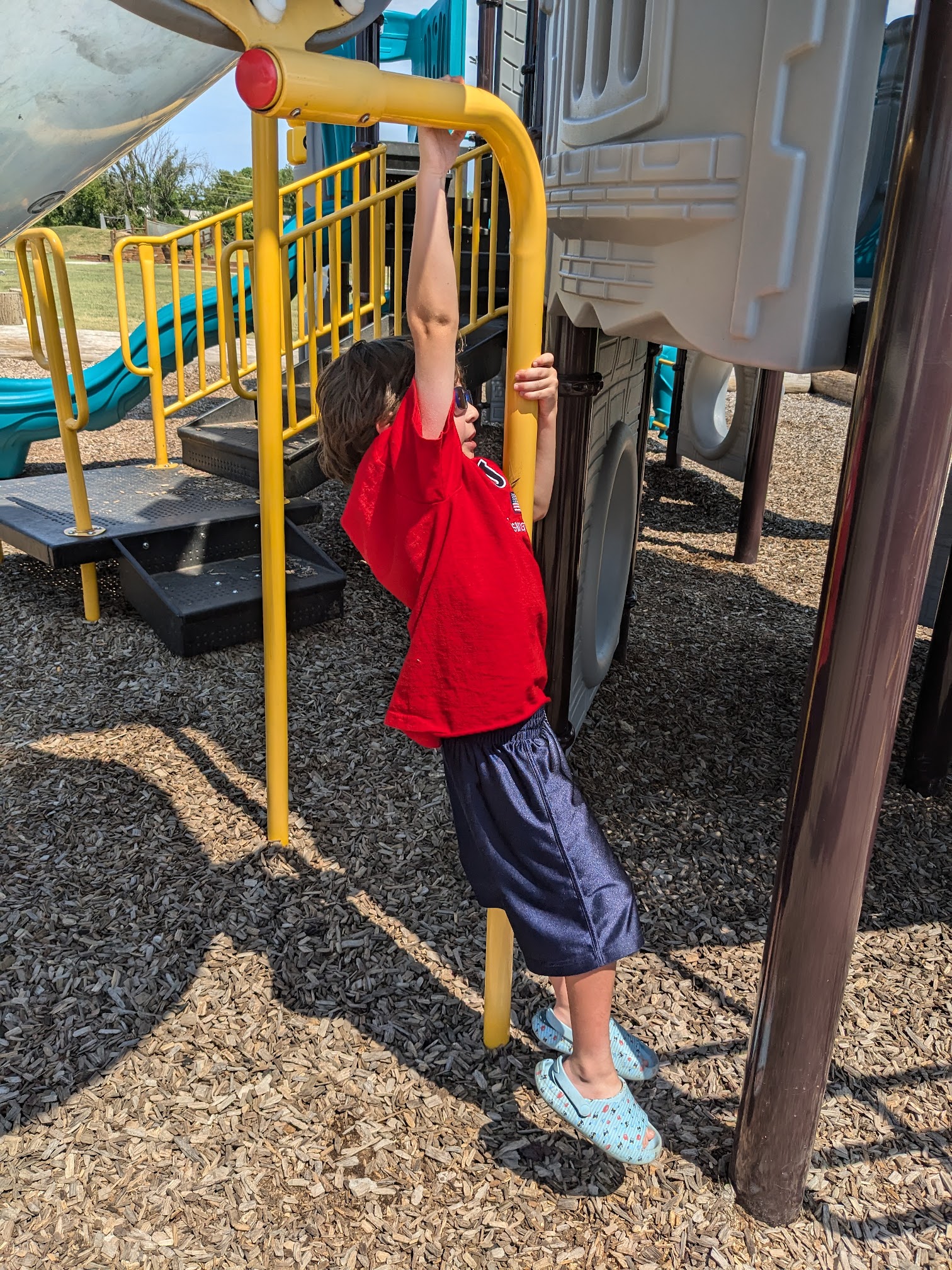 We love this splash pad & park! The pirate ship/castle equipment is perfect for toddlers that like to go on the bigger equipment, as there are no places to just fall out towards the top (a problem we run into with a lot of other parks.) They also have a small playground for younger toddlers near the swings. This park was perfect for my kids because they love to run off and play independently but I can keep an eye on them from the shaded picnic area that is situated right in the middle of everything. I can’t wait for the outdoor classroom part to be completed. I really hope they finish fencing that side in before it opens, though. That road behind it is dangerous.