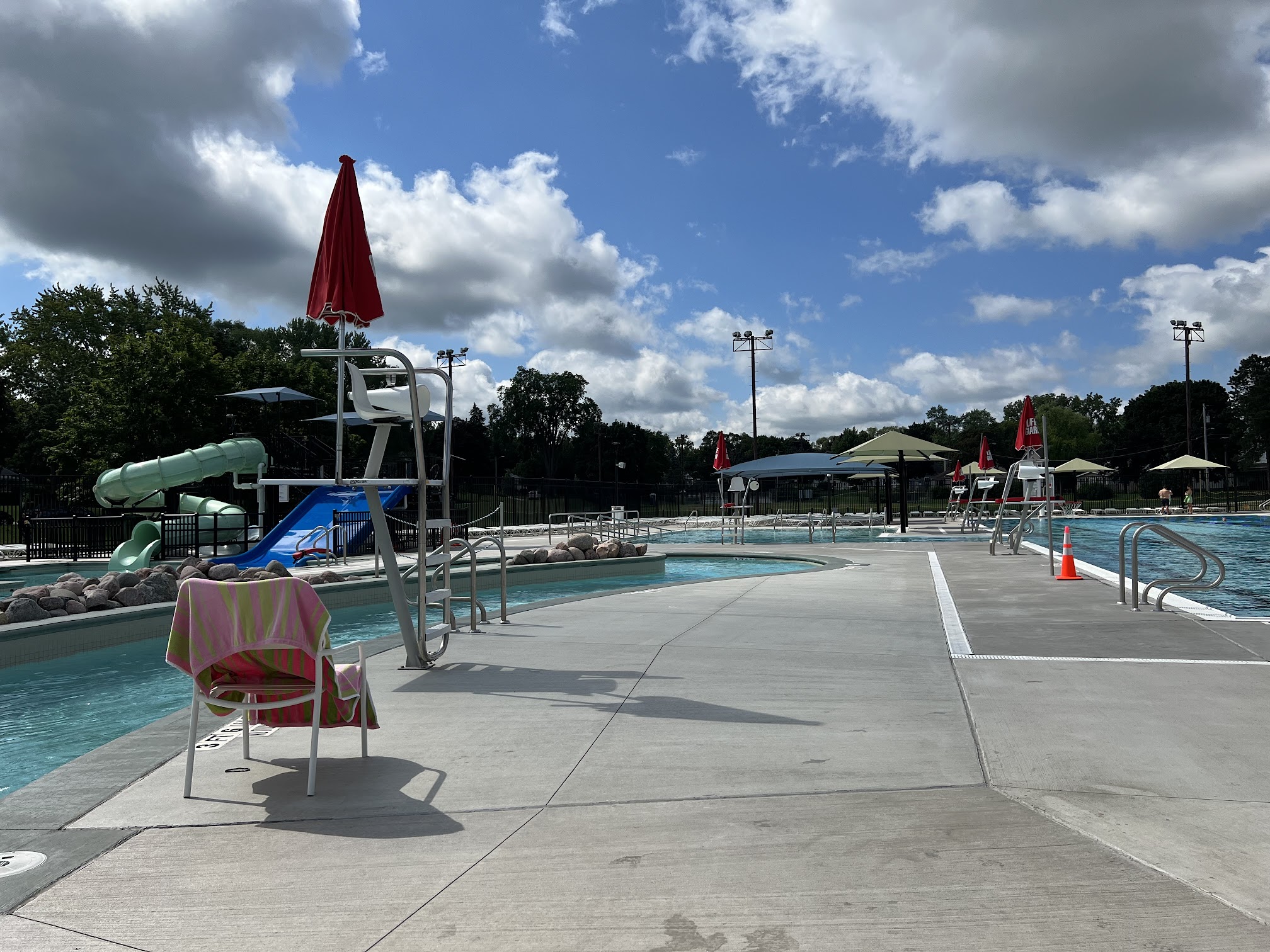 I love the separate, gated baby pool area and the lazy river! The parking around this pool is horrible and next to impossible on hot days or when they have tennis and pickleball going on as well! The lack of parking sends me to horeb where there is more parking!