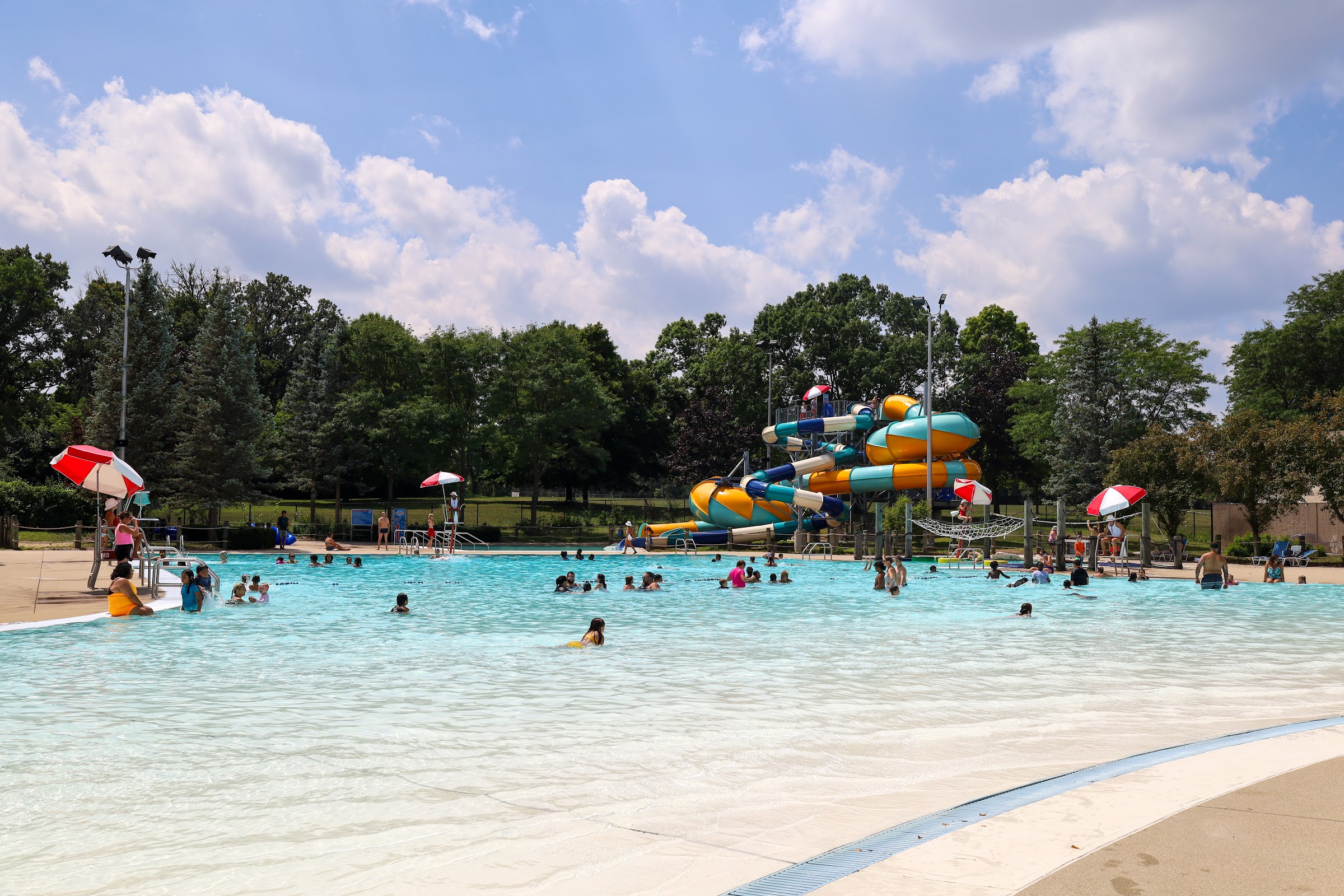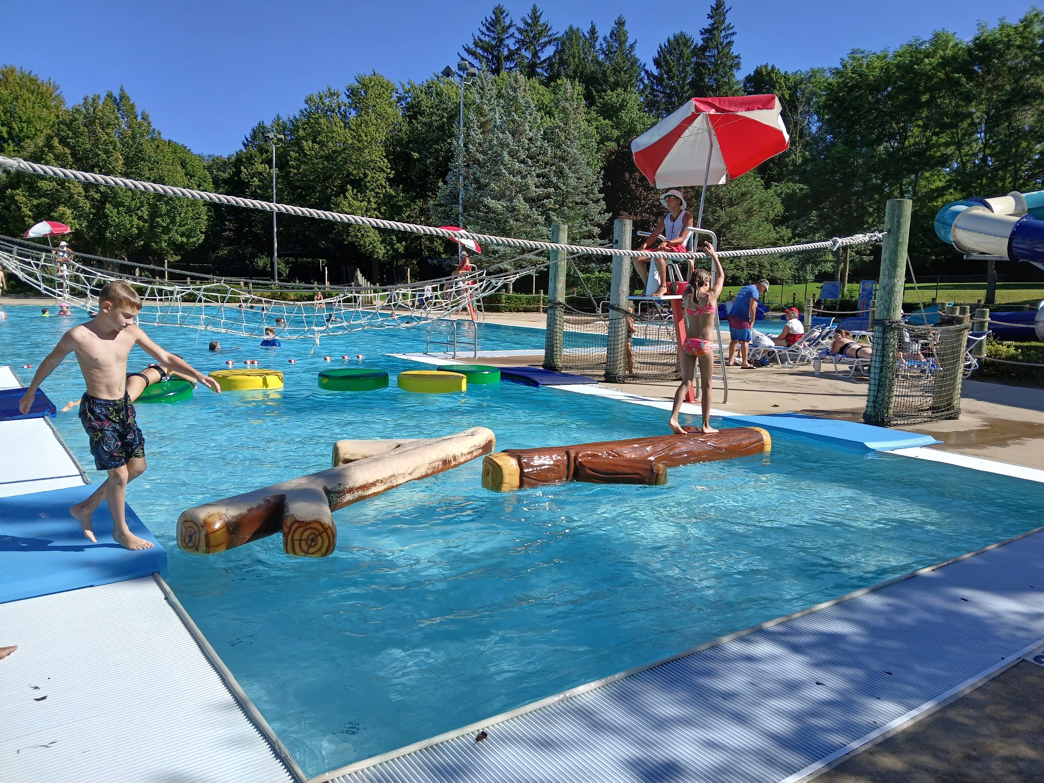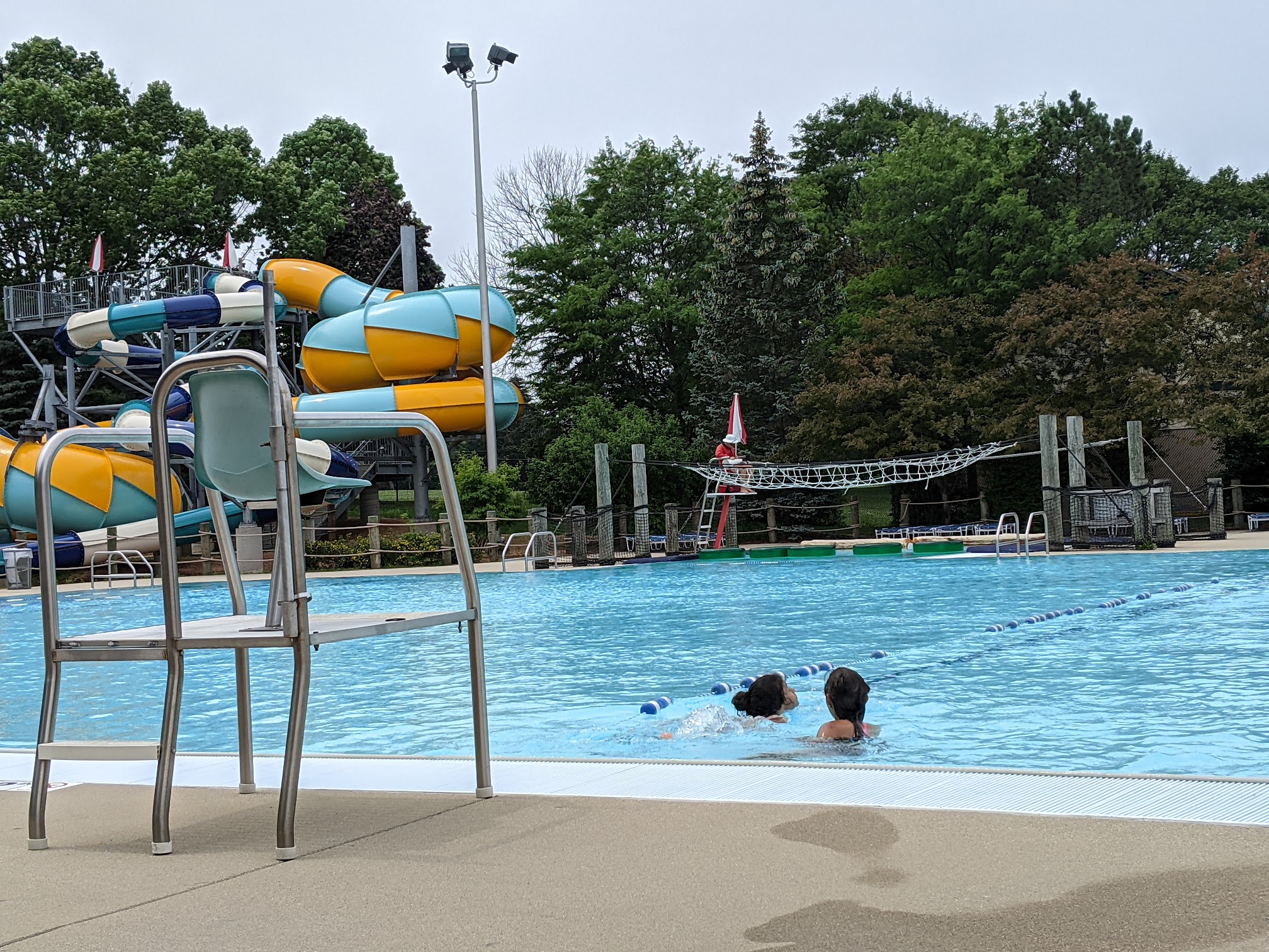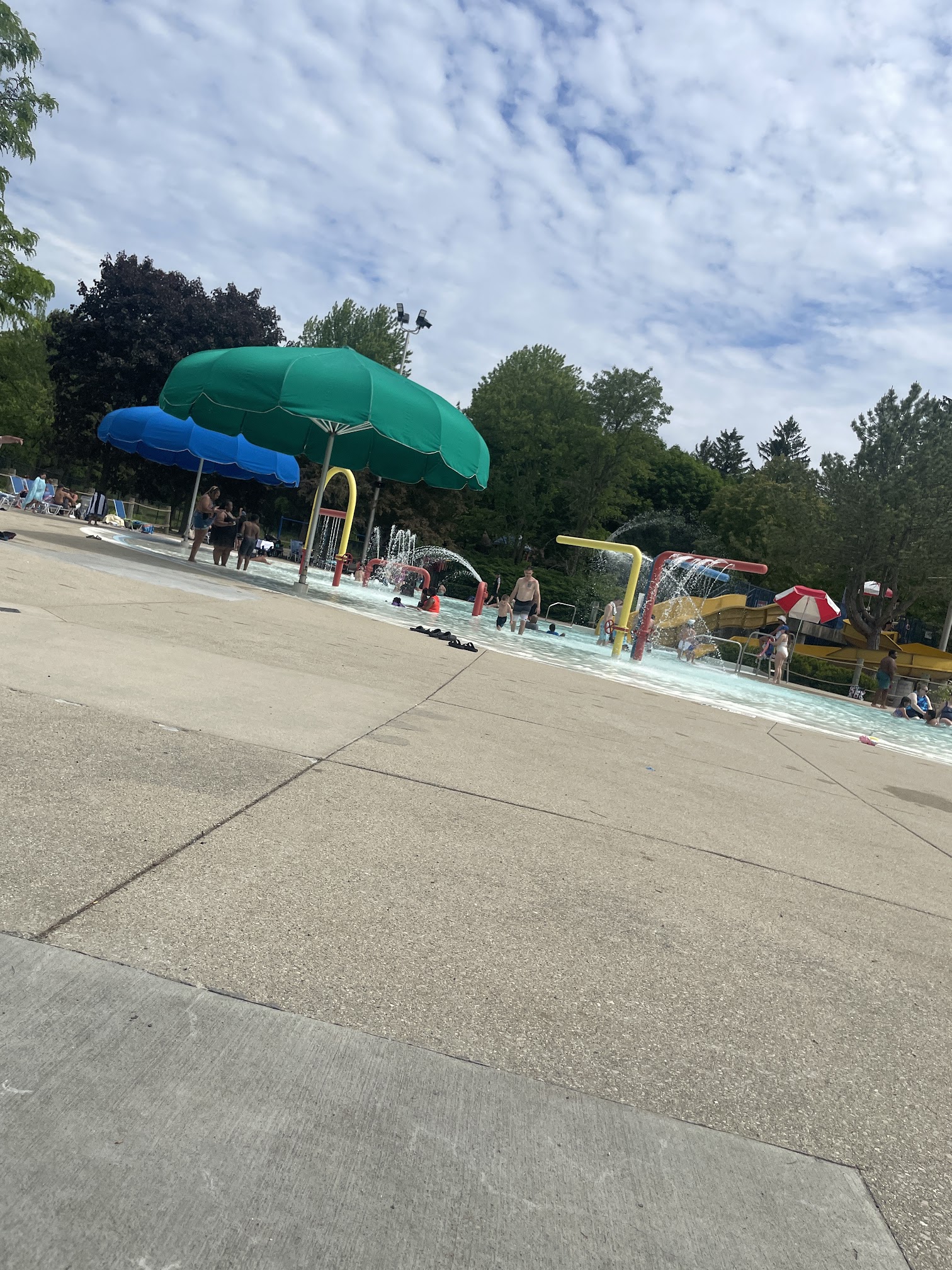 Great local water park. Good variety of things for littles , two small water slides. Didn't go in the deep end as I was with my 4 year old but two bigger slides looked fun. Decent changing rooms. Concession stand. Small playground. Great for the price, not busy for a Friday morning.