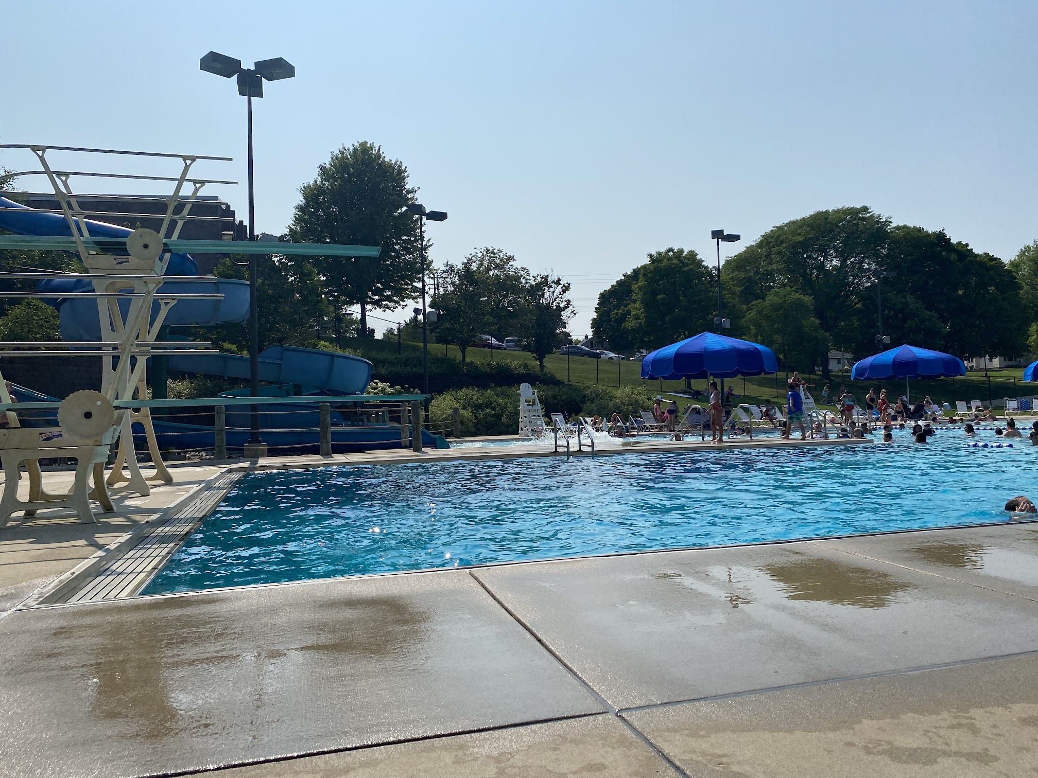 Casual, family-friendly aquatics center with diving boards and slides for all ages.