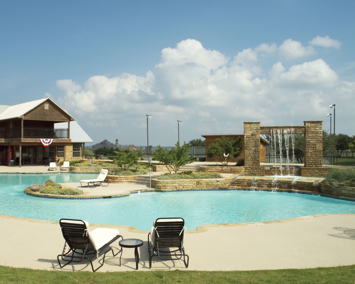 The Cliffs Club Pool, located at The Cliffs Resort in Graford, TX, offers a luxurious lakeside aquatic experience overlooking Possum Kingdom Lake. It features a multi-level infinity-edge pool, a children's pool, an adults-only pool, and a popular swim-up bar, providing stunning views and a comprehensive amenity for relaxation and family fun.
