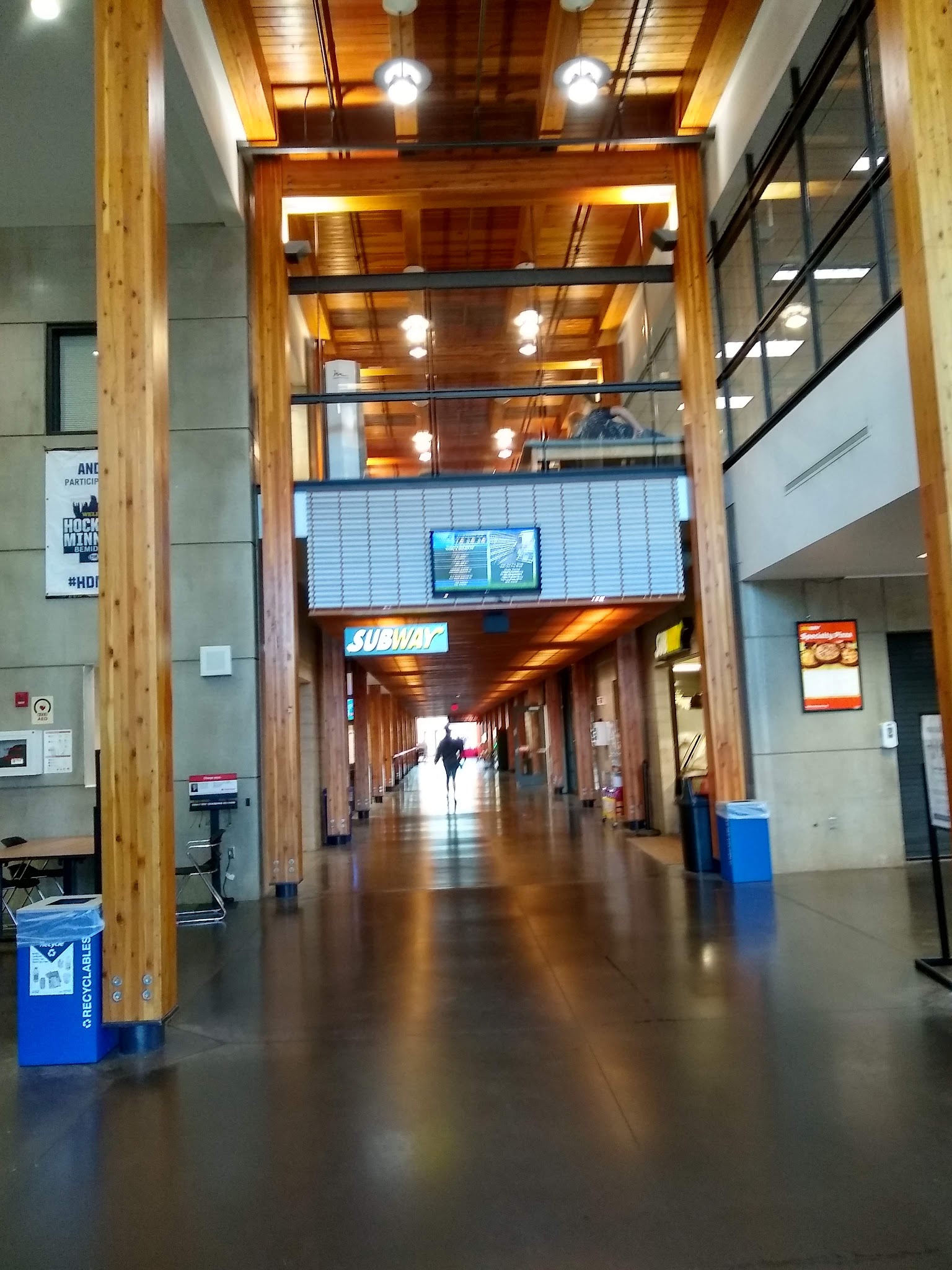 I like the kids leisure pool, there is a huge area that my 3 year old can walk in and it's not too deep. There are also two slides in the leisure area, one really small one and one that's medium sized. My 3 year old is getting more confidence (doesn't like going underwater but can handle getting face wet) and he can do the medium slide by himself. There are 2 large slides but we've never been here when it is open. I also love the Kids Stuff room. They have a huge room for the kids to play in, plus a playground outside they go to on nice days, PLUS an indoor 'playspace' playground. It's not huge but it is two stories and my kids often come out tired from running around and playing. There is a subway inside the community center closer to the hockey arena so that's a bonus if you want to stay for awhile!