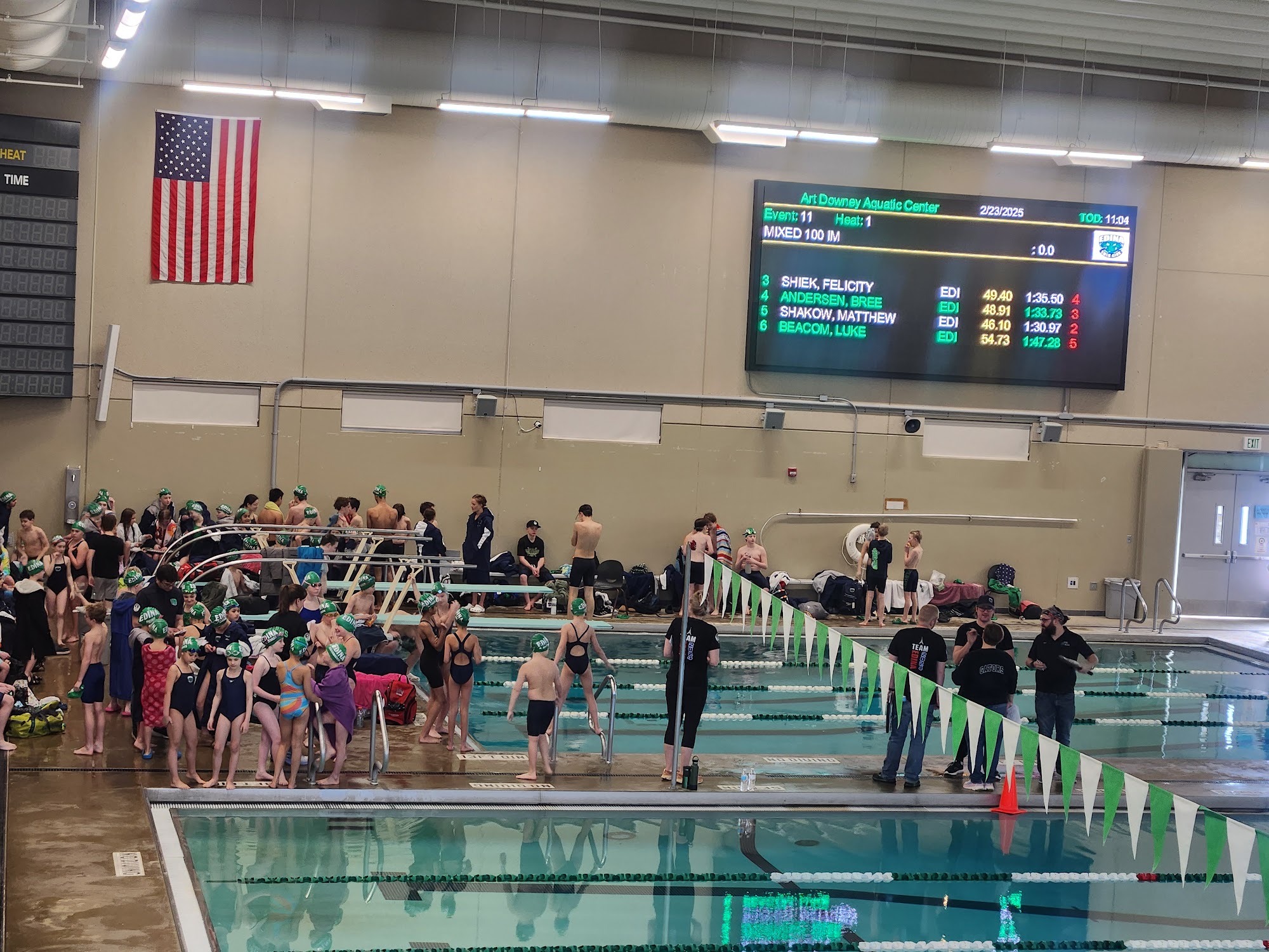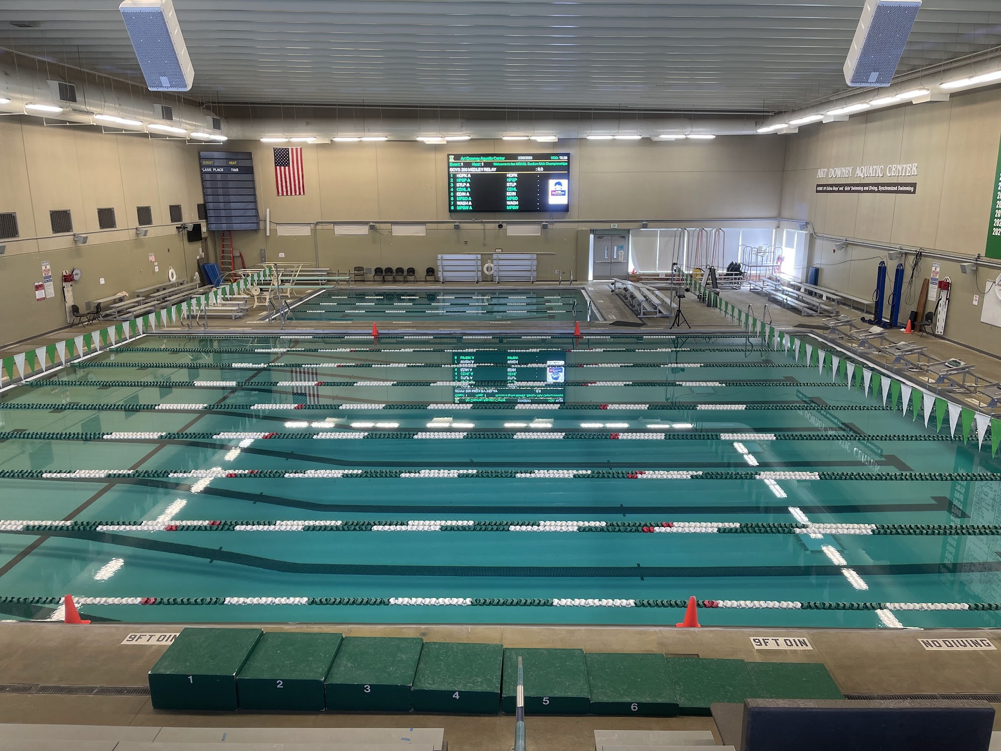 What are people saying (AI review summary)? The aquatic center receives overwhelmingly positive feedback from both swimmers and spectators, frequently described as an "incredible complex" and the "best pool by far." Highlights include abundant seating (with capacity for 200-300 people), multiple pools (a 4-lane warmup and an 8-lane primary pool), comfortable and cool temperatures, a bright and non-stuffy atmosphere, and being a "fast" pool for swimmers. Many praise its cleanliness and excellent maintenance. However, one review noted a specific negative experience where the pool was "incredibly dirty" with hair and band-aids, and suggested the locker rooms needed deep cleaning.