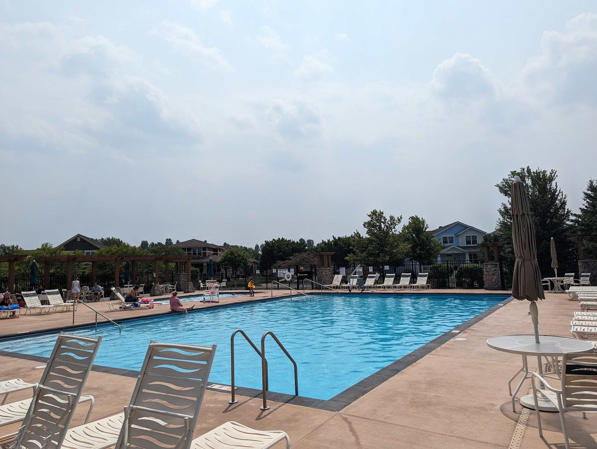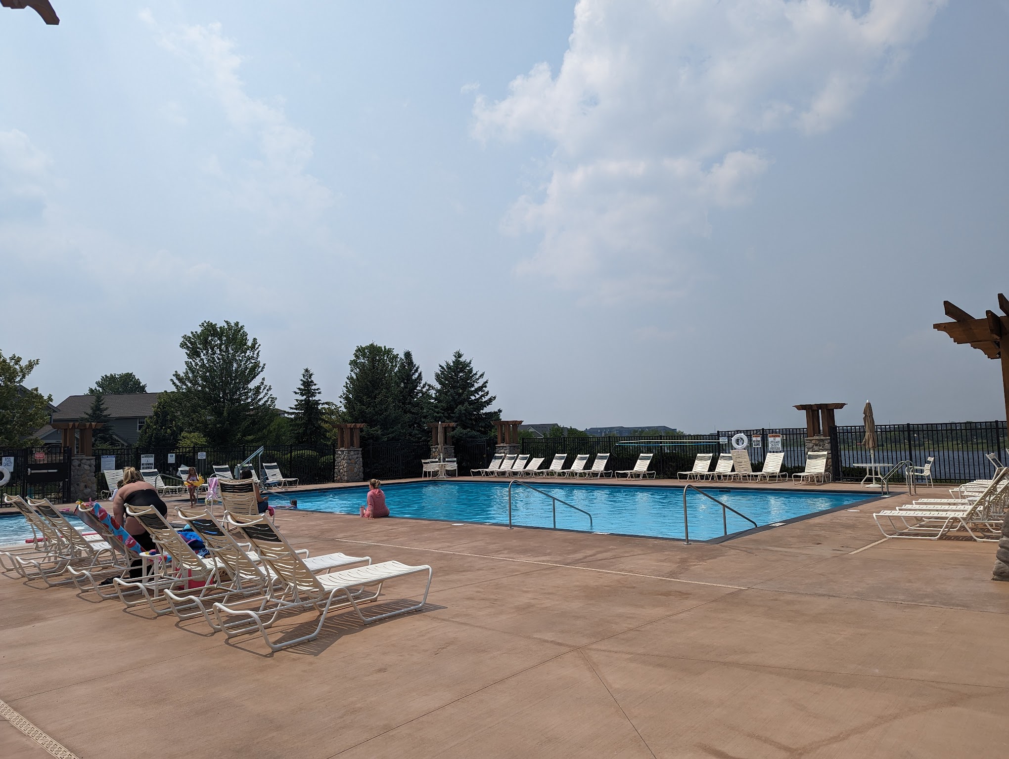 Both the main pool and the children's wading pool are heated to a comfortable temperature of 82 degrees Fahrenheit.